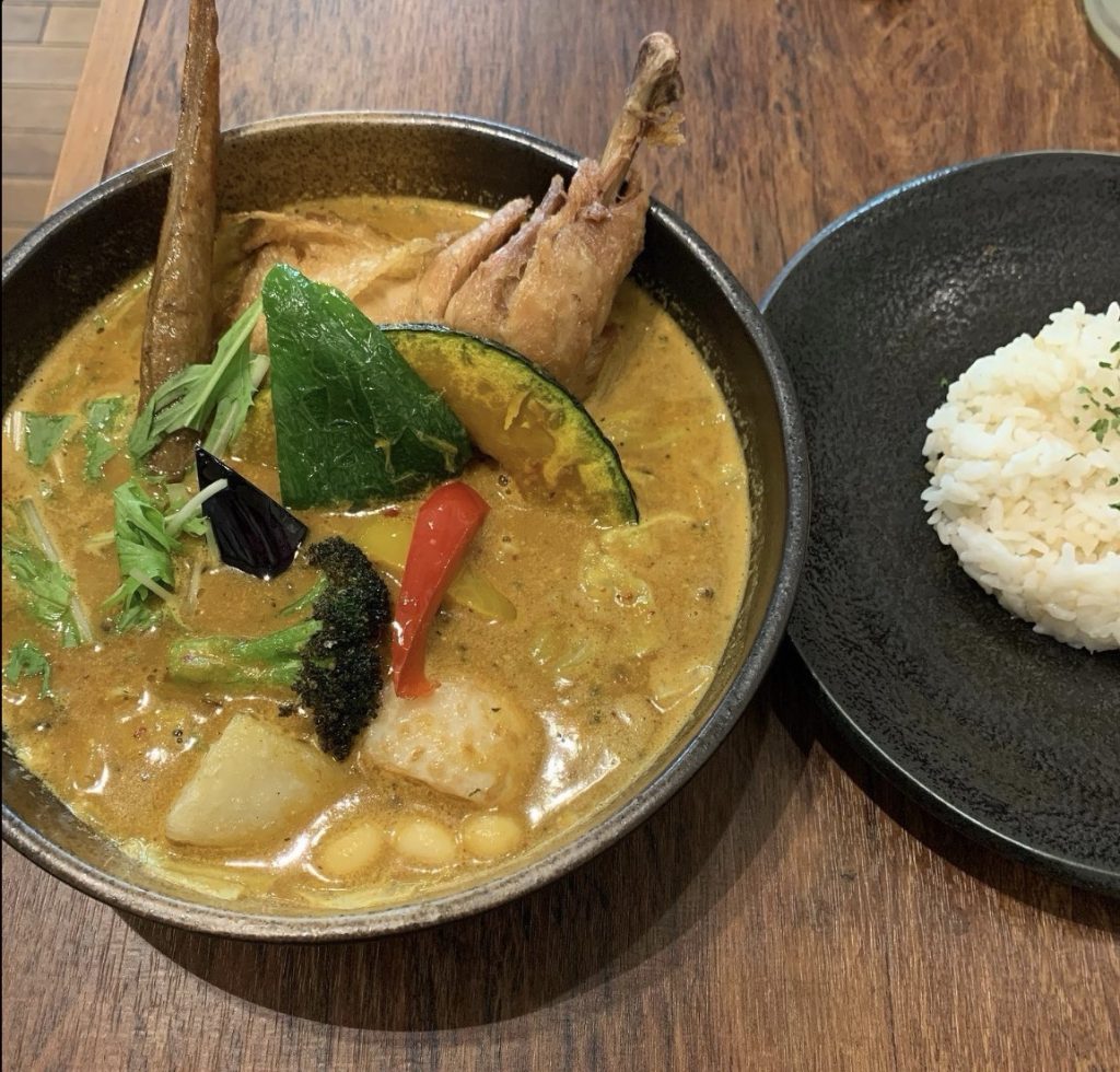 鎌倉の街並みにしっかり溶け込んでいて おしゃれな雰囲気な店。カレーは10種類でトッピングが豊富。野菜20種類以上で鎌倉の地元産野菜が入っている。ココナッツスープ 大きめの野菜がゴロゴロと入っていて 罪悪感が多少和らぐ。