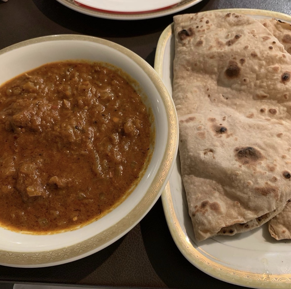 本格的な南インドカレーの店のようで見たこともないメニューがいっぱいありました 値段は少し高めでルーが1400円くらい。スパイスがたっぷり濃厚で普通のカレーより辛い。 ここからチャパティ好きが始まった。
