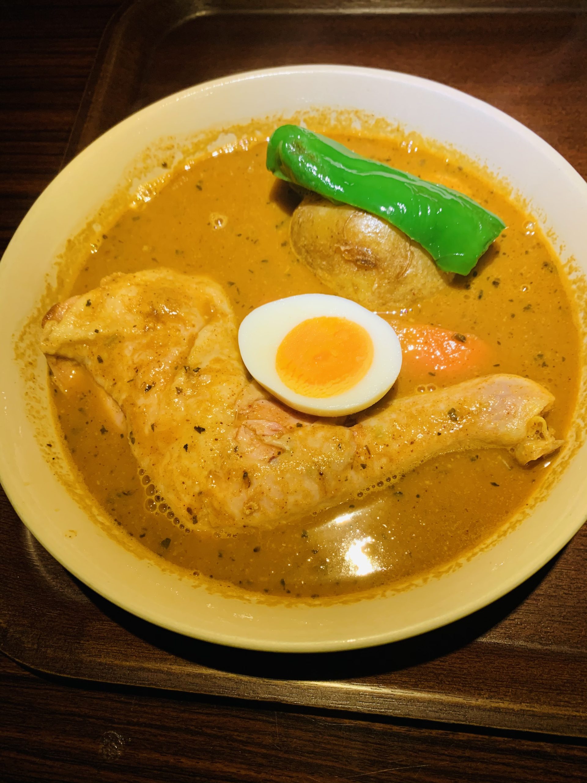 カレーの種類が豊富。トッピングも色々あります 頼んだ後気づいたが平日雨だとトッピング半額(100円トッピング無料)のようで雨降ってたので頼めばよかった残念。辛さの段階が14段階くらいあって調子に乗って辛いの頼んだらかなりの激辛舌が痺れてカレーの味が分からなかった。ジャガイモとチキンで少し中和しながら完食 チキンが柔らかくて美味しいです