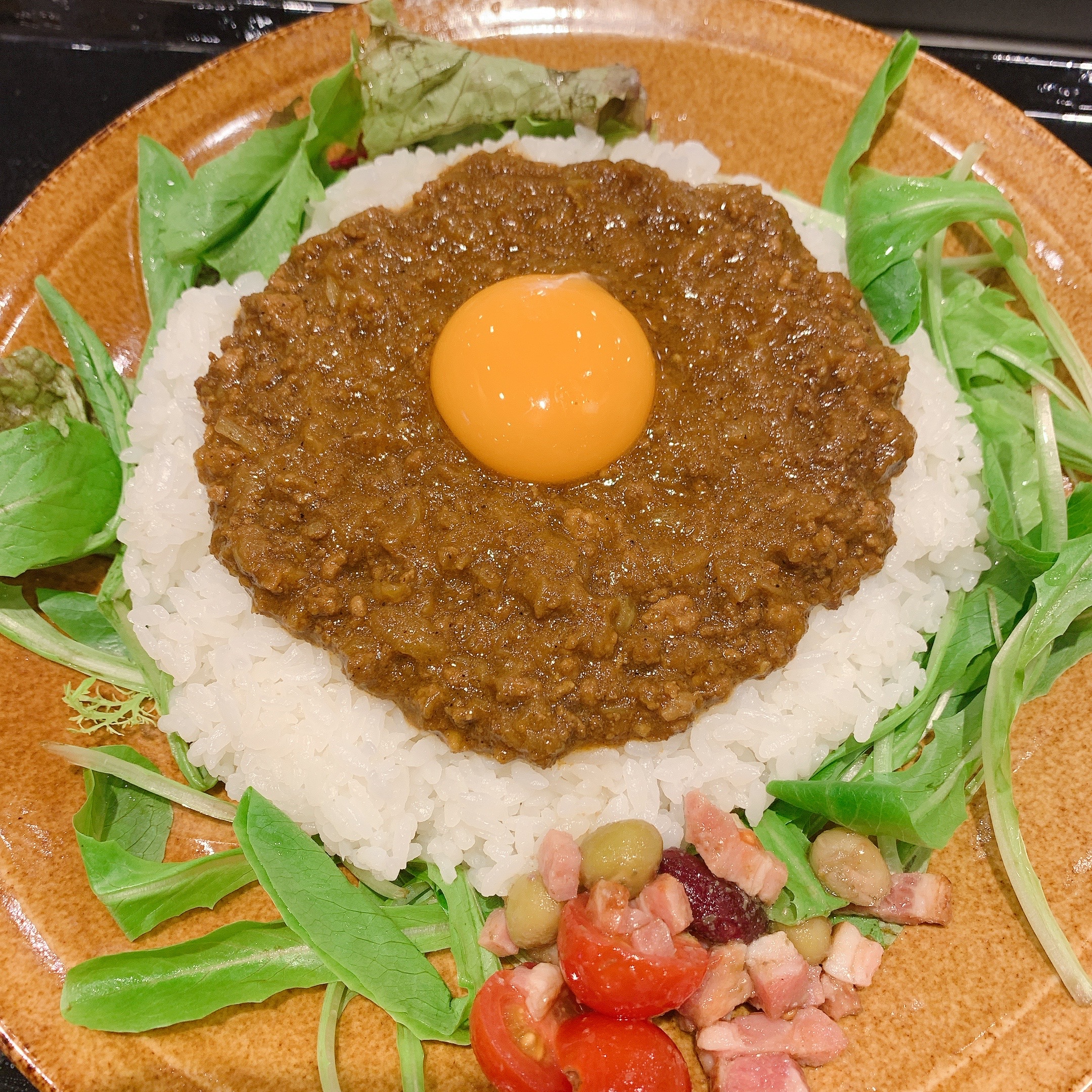 いろんな種類のカレーがある。キーマカレーはかなりねっとりで好きな感じだが、もう少し辛み欲しいかな。野菜も載っていて別皿サラダも付き少しだけ罪悪感無いです