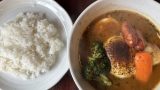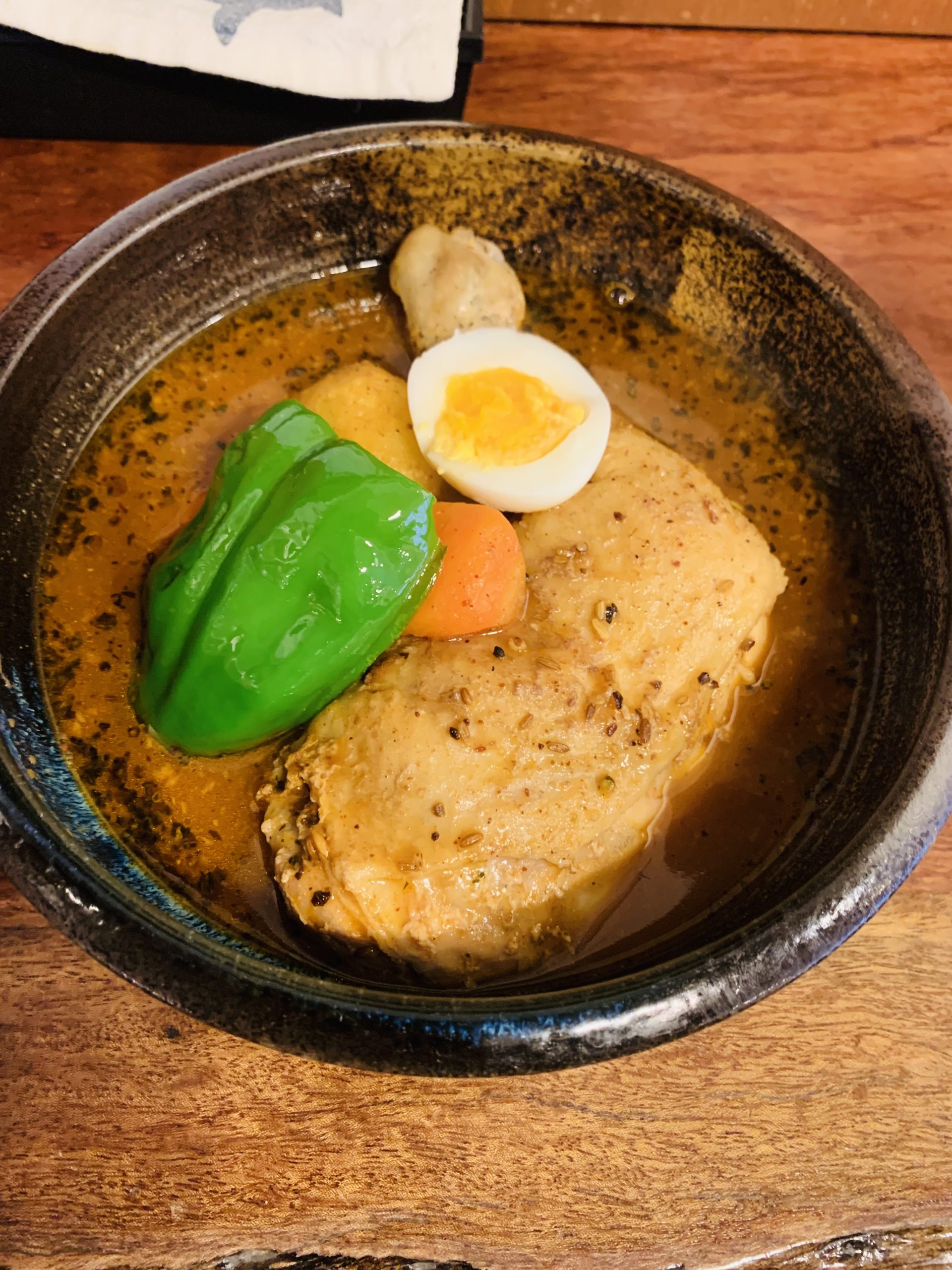 野菜のカレーが充実。舞茸入りとかもあったりして珍しい 知床鷄のスープカレーが限定であったので、そちら注文。ご飯は白米、玄米から選べる。玄米は珍しい。辛さもかなり多段階で選べる。 鷄はかなり柔らかく美味しい。スープカレーは大きめの野菜がよく合う。