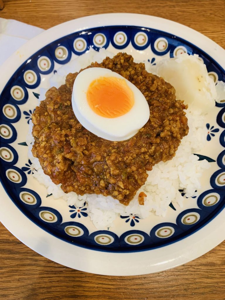 13種類くらいのスパイス使っているようだ 辛さは10倍まで頼め、ご飯の量も頼めばいくらでも増やしてもらえそう ドライカレーはパンチが効いてる感じではなく、優しい味付け色んなもなのが凝縮してそう いっしょについてくるじゃがいもがほくほくで美味しい