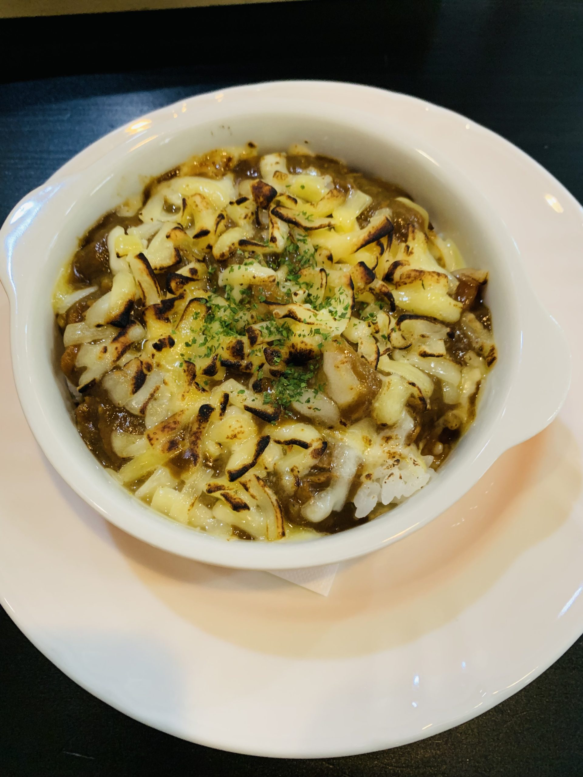 ランチはパスタメニューが多い感じ。ちょっと塩分若干多めかな?と思うルーにチーズがたっぷりでガスバーナーで焼かれていて若干焦げ臭いが、まぁ普通に食べれるかな。