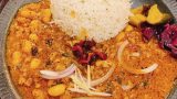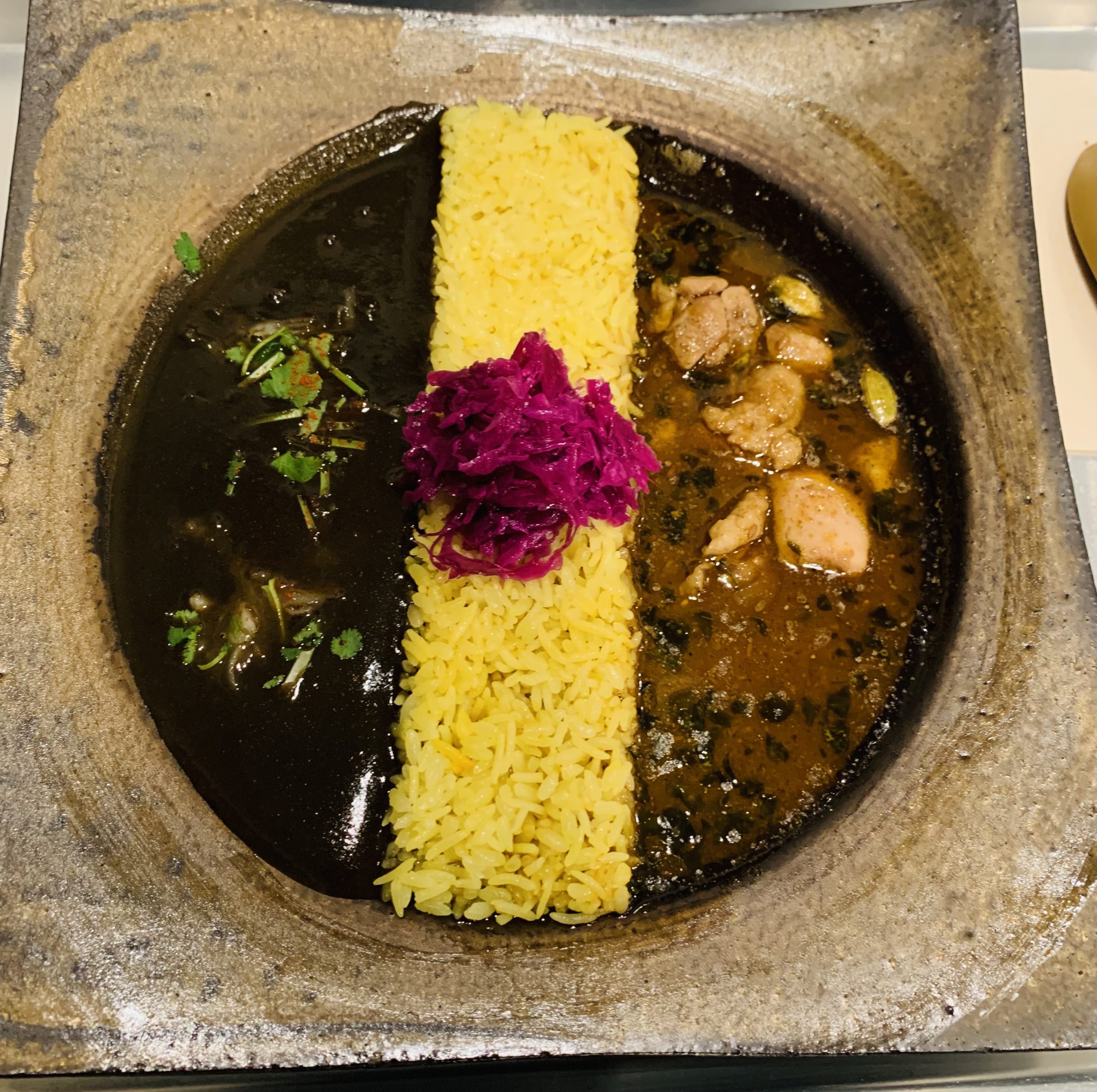チキンカレー&海老とじゃがいものイカ墨 2種盛りカレー