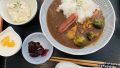 チキンカレーはかなりシャパシャパの南インド系?日替わりは海老とじゃがいものイカ墨カレーで どちかというとこちらの方が好きだった。イカ墨のカレーははじめてだったが、意外と合う。両方のカレー共通だが、具は少なくもう少し欲しい感じがする