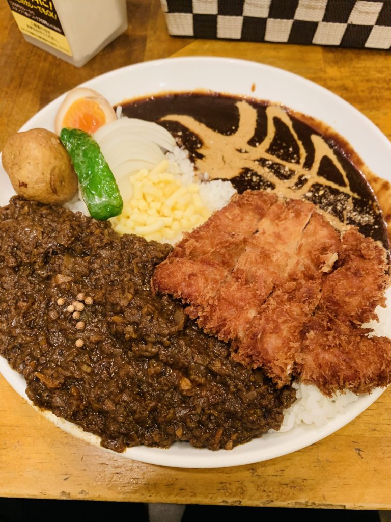欧風カレーがベースだがディープオニオンカレーはルーが違うので赤身かつとの2種盛り頼んだ オニオンは生のまま出てくるのは珍しい生玉ねぎの多少の辛味と濃厚ルーは良く合う かなりのねっとりで旨味凝縮されてる ここのカツはサクサクで食感もいい