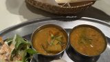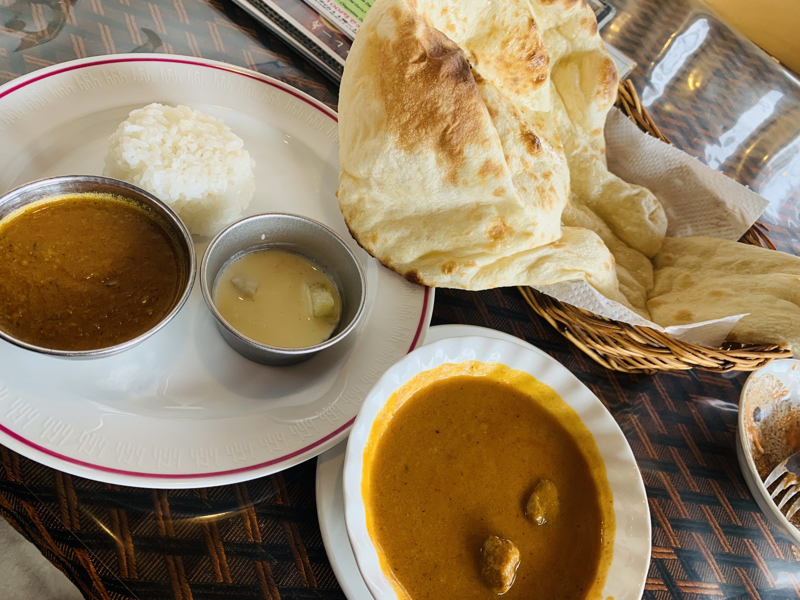 ナン、サラダ、ドリンク、ライス、デザート付きと一般的ランチメニュー。900円は安い 小さいの二つ出てくるのかと思ってたら、マトンカレーがデカい皿でびっくり。ナンも大きくお腹いっぱい。ルーはサラサラ系で普通。ナンが焼き加減よくふっくらしてて美味しい。