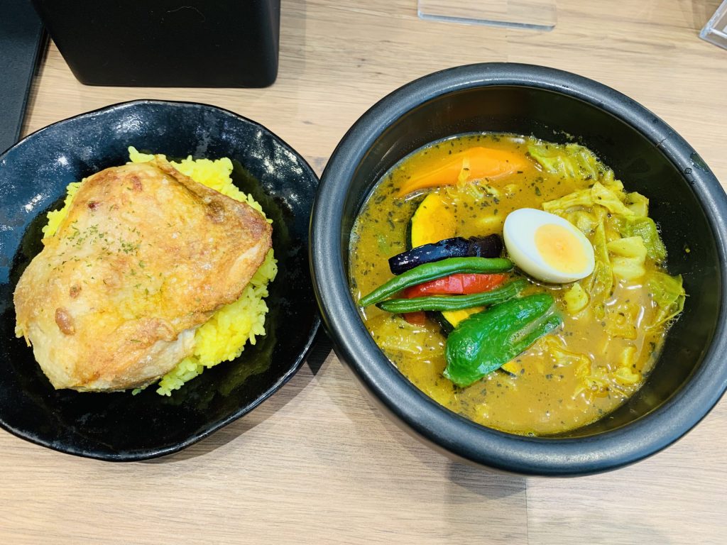 辛さは好みで、100倍まで頼める。 最初なんでオススメのkanako’sチキングリルonライス 15倍から。このくらいだったらまだ辛さはあまり感じない。スープはカスタマイズが色々出来るが、ノーマルなものから。さわやかな感じのスープで夏にいいかも。グリルチキンが皮がパリパリで味付けもいい。