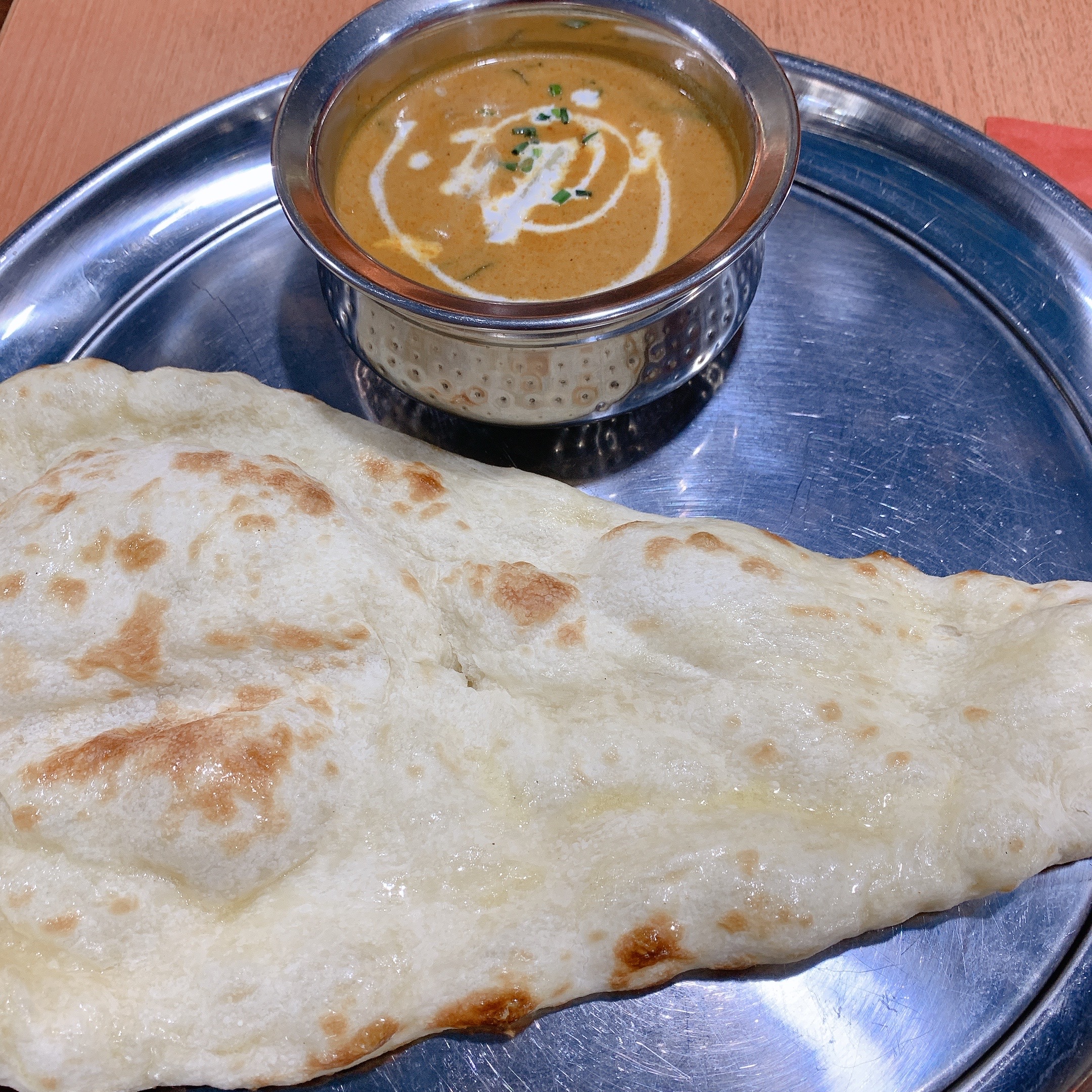 ルーは量多めで熱々で出てきた。ココナッツが入っているので凄くマイルドな感じ。ココナッツは海老との相性がいい。濃い目のルーで好みだった。ナンはもっさりしていて、個人的にはもっとモチッと&パリッとした焼き加減が好き