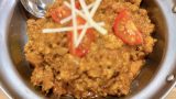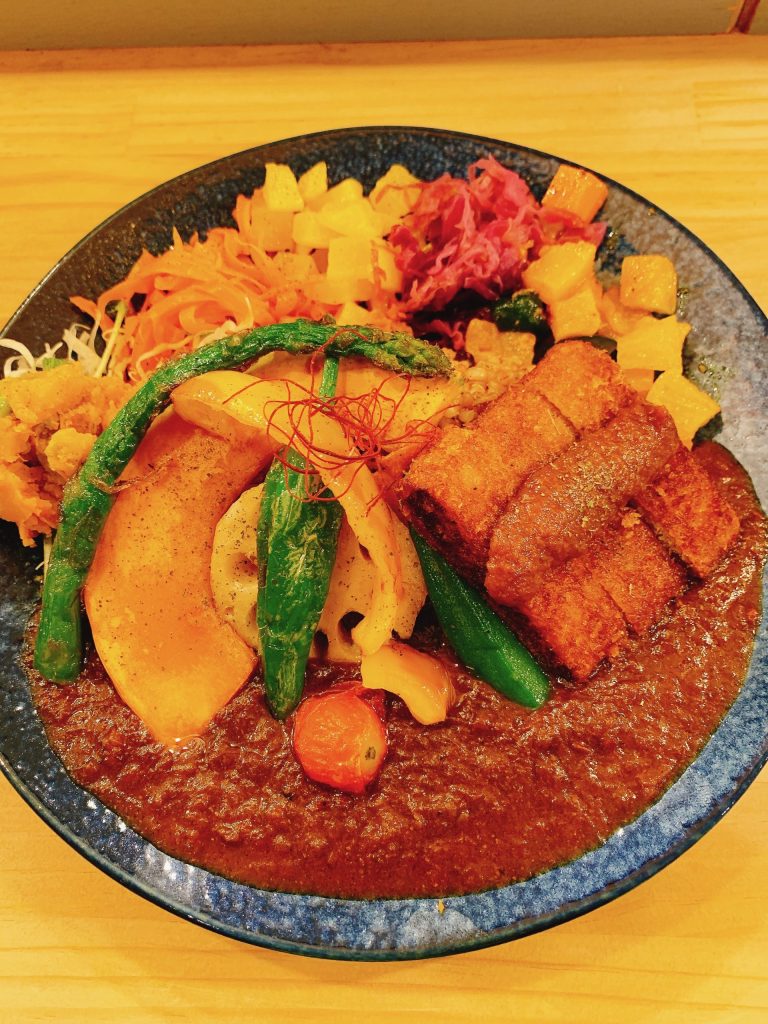 なんのカツかよくわからないが、ちゃぶや謹製カツカレー頼んでみた。とんかつかと思ったらヴィーガンカレーだったらしくカツも野菜の完全ヴィーガン。想定外だったがこのカツが弾力があって美味しい。具も野菜がいっぱいで罪悪感の少ないカレー。ライスが酵素米でカレーとよくあってた。