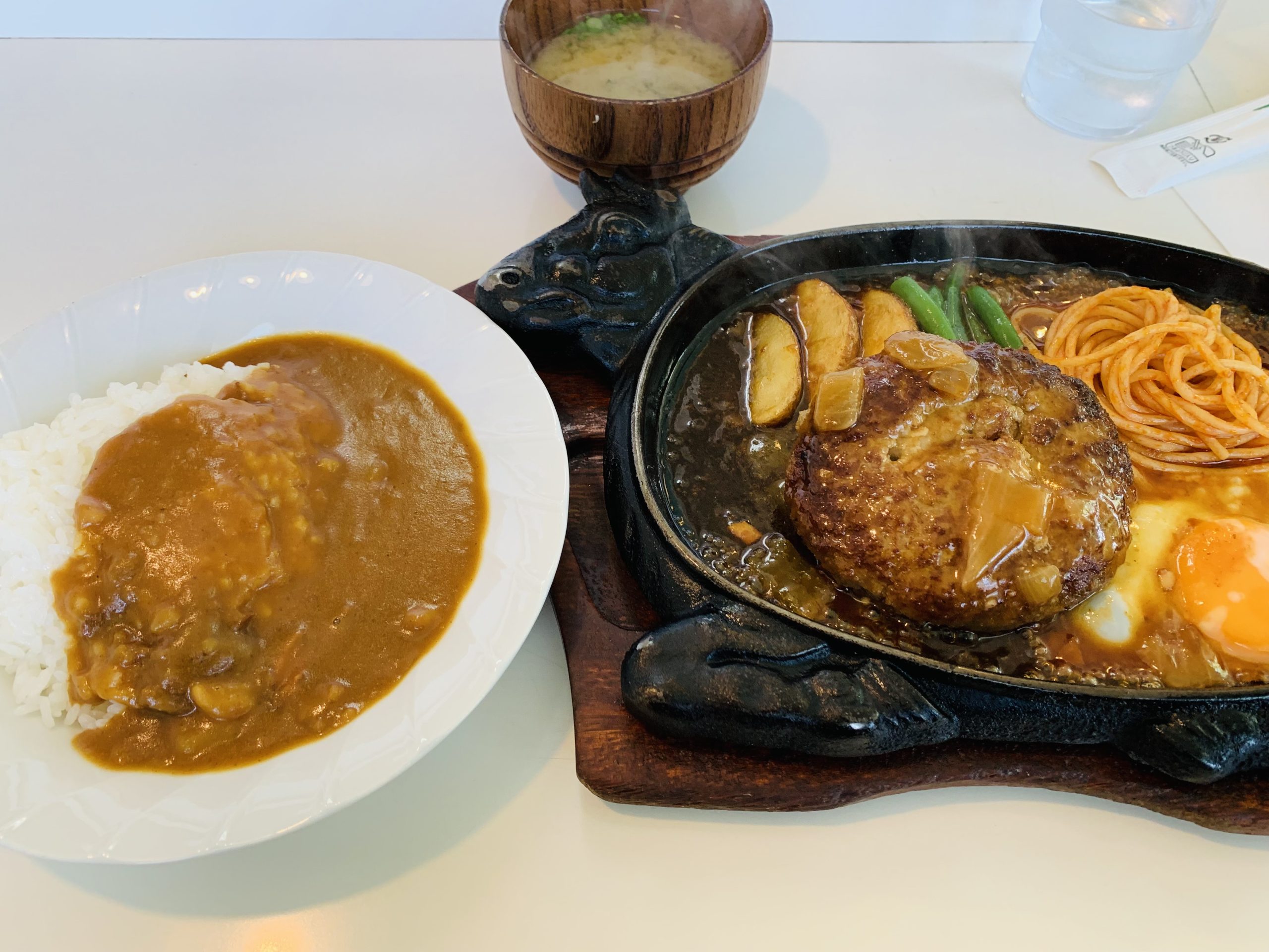 休日は混むという書込みあったが、平日だと大丈夫かと、思いや混んでる。開店直後で満席だった カレーとハンバーグ頼んだが、カレーの方は少し少なめで良かった。普通サイズだと食べきれない。 カレーは昭和感なルーカレーだった。ハンバーグが凄い柔らかく甘めのソースとよく合う美味しいハンバーグで人気店なのも頷ける。コスパもいい