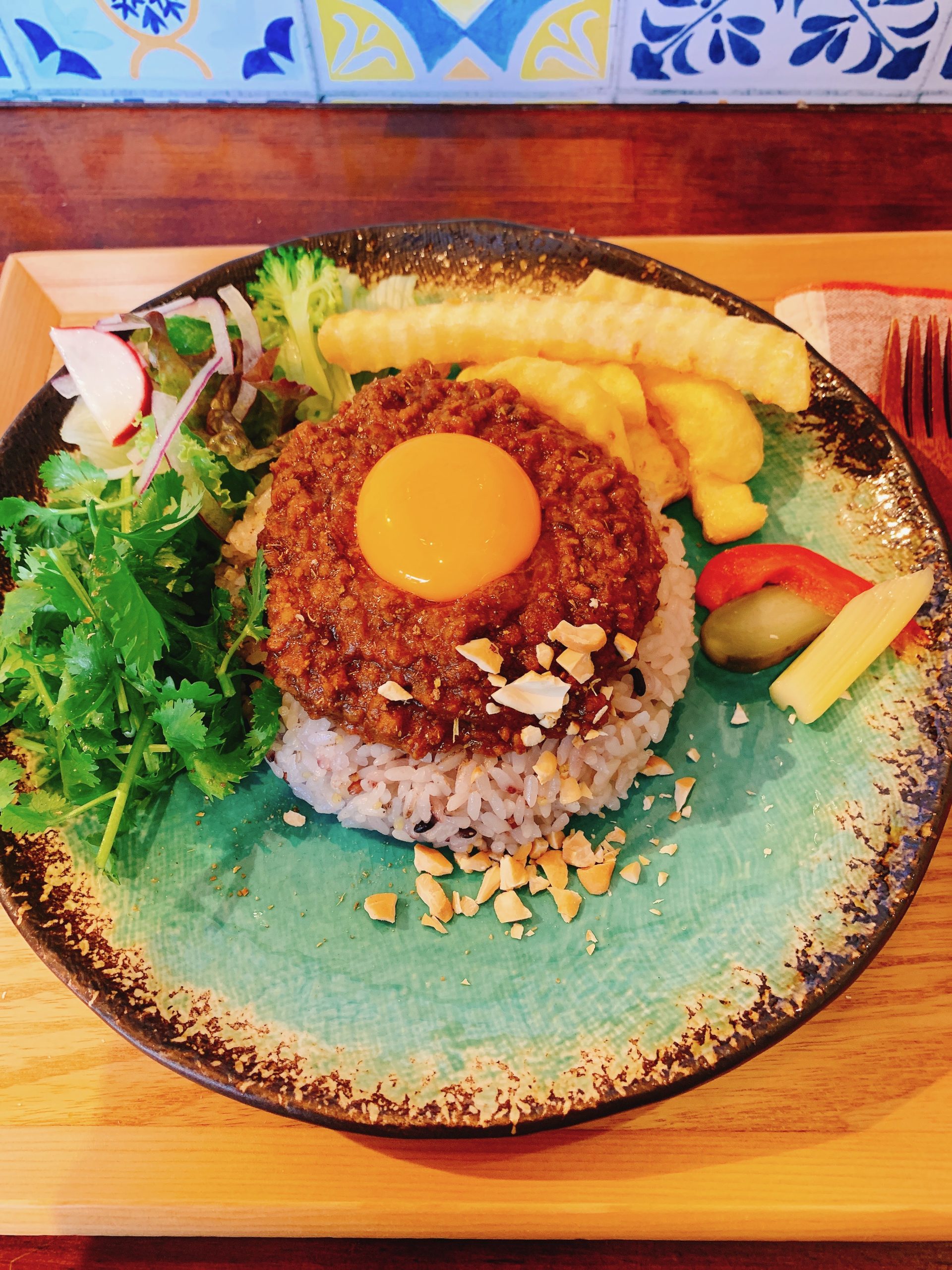 ライスは十六穀米も選べる。キーマはかなりねっとりしていて、素材の甘みが引き立ってる。卵との相性が良く美味しかった。