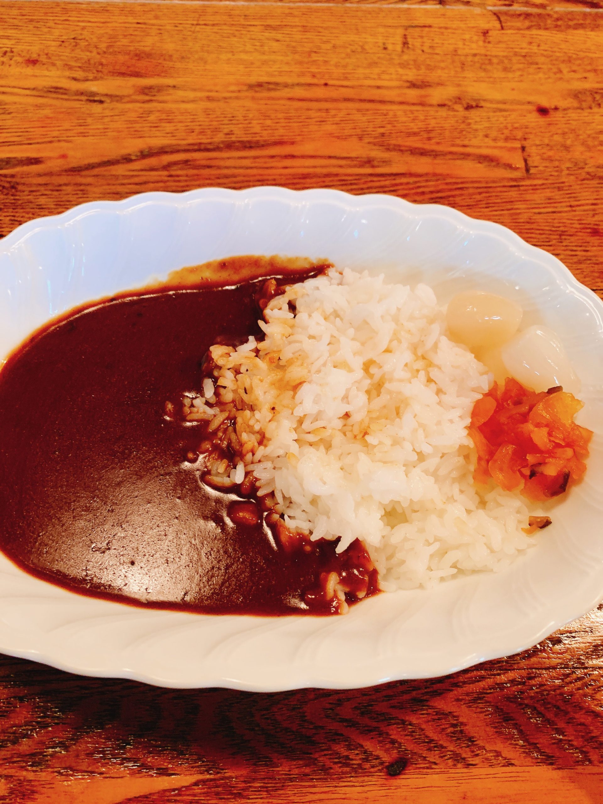 昭和レトロな感じのバーでランチ。 喫茶店のようなメニュー構成でどれも安い。 ビーフカレーは450円。この値段なんで、期待してなかったが、結構美味しい。 ランチはこれで十分満足。満足。