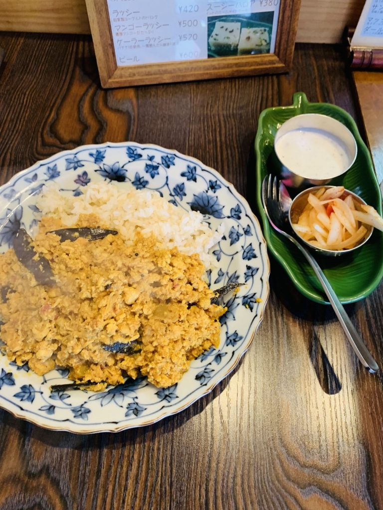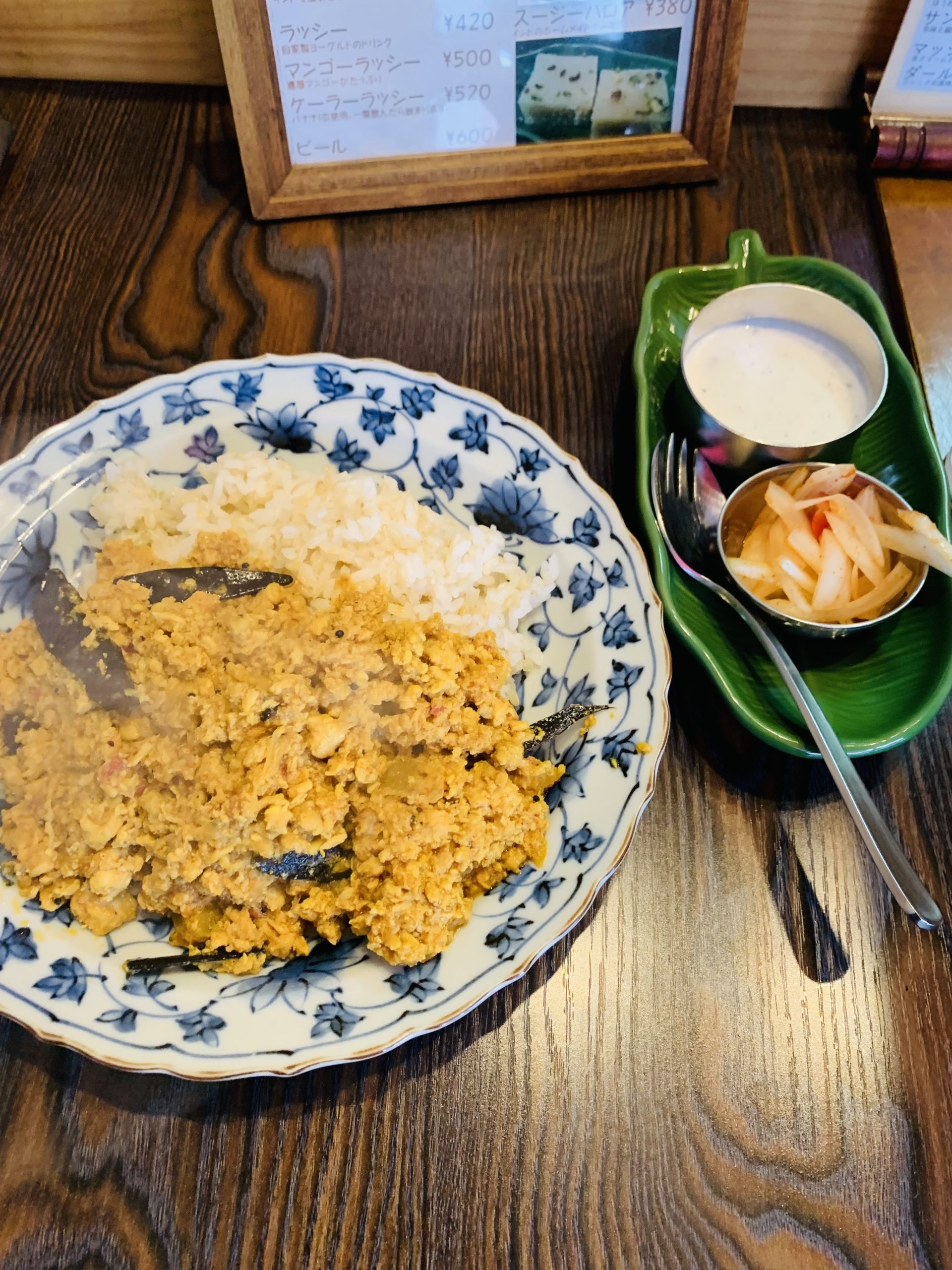 純インドカレーの店のよう。店員さんは日本人。カレーは6種類くらい。1500円から。 ムルギーもあり惹かれだが、いつも通りまずはキーマから。結構スパイス効いていて、本格的。ルーもたっぷり入っていて、満足。