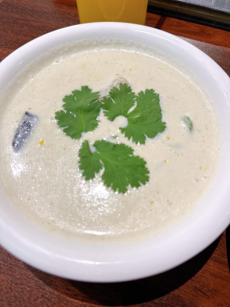 インネパ店だが、インド、タイ両方のメニューが食べられる。タイグリーンカレーが美味しそうだったので頼んでみた。ナンも選べるのが面白い。ナンはサラサラカレーだと食べにくそうなのでライスにしたが、量凄い多い。しかもおかわり出来るらしい。 カレーはココナッツミルクが凄い入っていて、真っ白。味もココナッツミルクスープのようだが、辛さはしっかりあるので、意外といける。