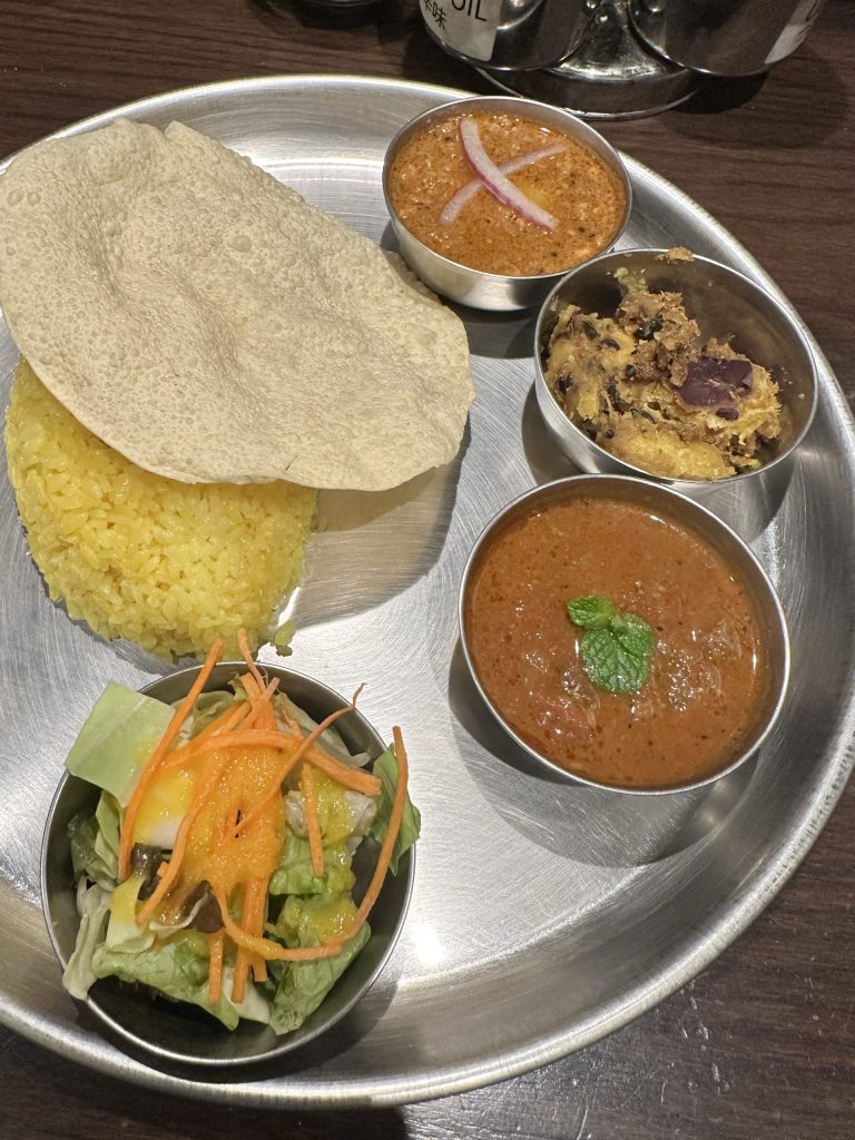 ランチのカレープレート約1000円でカレー三種はお得感。 キーマとサツマイモ、ブラックペッパービーフ注文。 どれも安定して美味しいが、特にサツマイモのカレー炒めみたいなのが、初めて食べたが、具として入ってるのは他の店で食べたことあるが、ここのはほぼサツマイモで具がカレールーみたいな感じ。甘くて美味しく新鮮。これだけでもライスなしでいけそう。