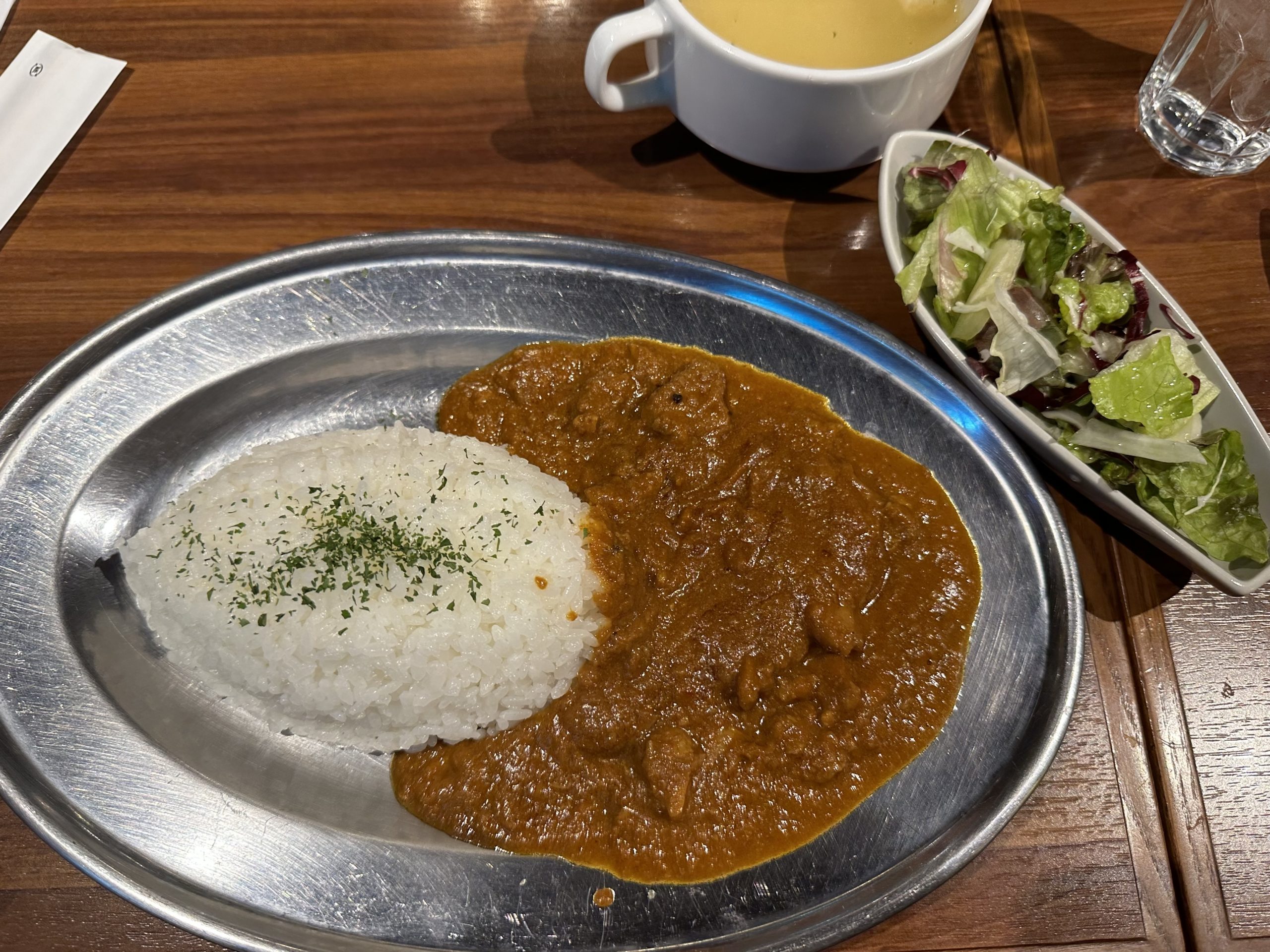ウルトラマン怪獣のコンセプトの店らしい。店内怪獣の人形が沢山ありウルトラマンの映像流れてる。 ランチは、洋風。ハンバーグ、スパゲッティ、カレーなど一般的だが、どれも美味しそう。 カレーはスパイシーさが引き立っていて、ねっとり感の強いカレー。色々煮込まれてる感ありで良かった