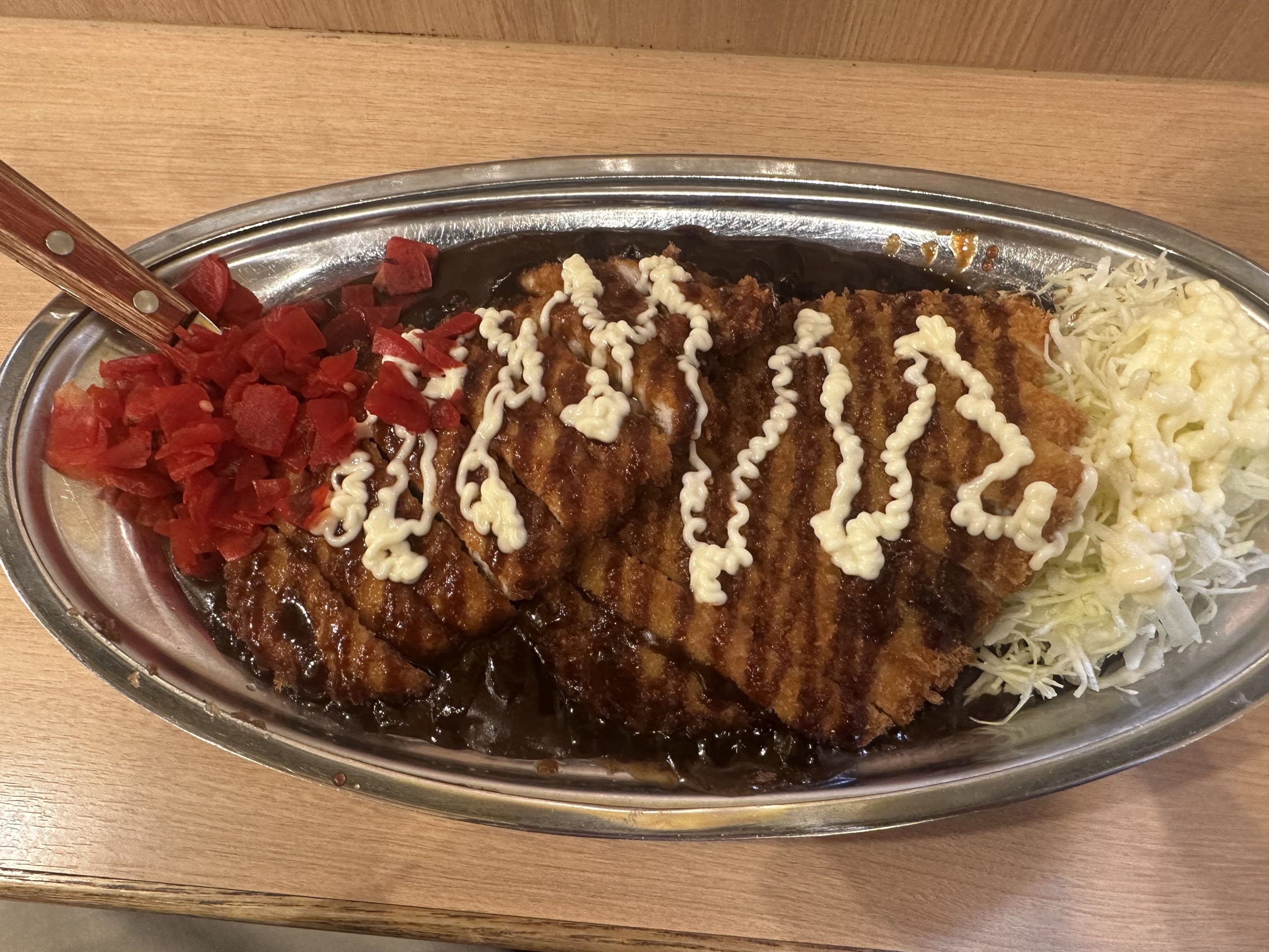 ここは今まで行った中で1番狭い。以前たしか立ち食いそばの店で居抜きで使ってるので窮屈目。 勢いで必勝カレー頼んでみたが、カツ2枚はやっぱ重かった。ただ、気のせいか、他のゴーゴーより肉が柔らかく良かった。