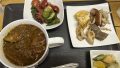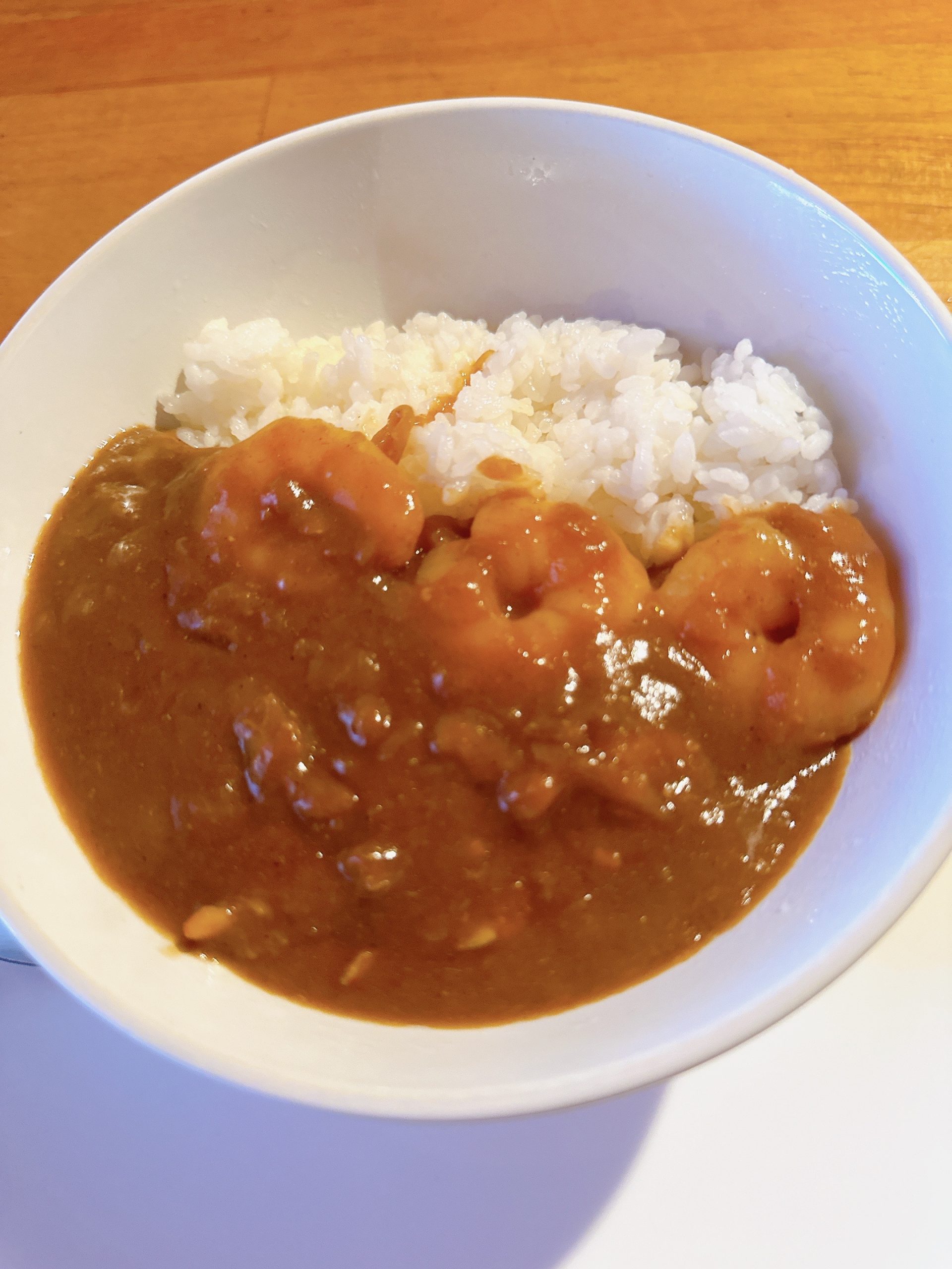 分煙されてないが、入口オープンされてるので、匂いは気にならない。 ランチのエビカレーはエビがゴロゴロ。ちょっと甘めだがえびにはあってたっていて葡萄も入る変わりもので、こんなサラダ初体験だがかなりいい。 入口の見た目とギャップある店だった