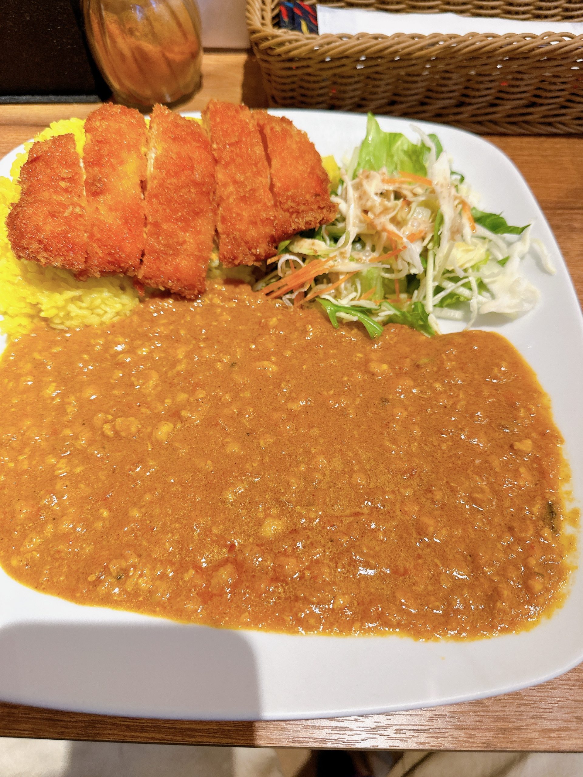 カツはたさかにタンドリーチキンそのもの。カツは揚げたてで美味しかったが、ルーがスパイス感あまりになくちょっと物足りなかった。テーブルにある、香辛料かけて味変するのがおすすめ。