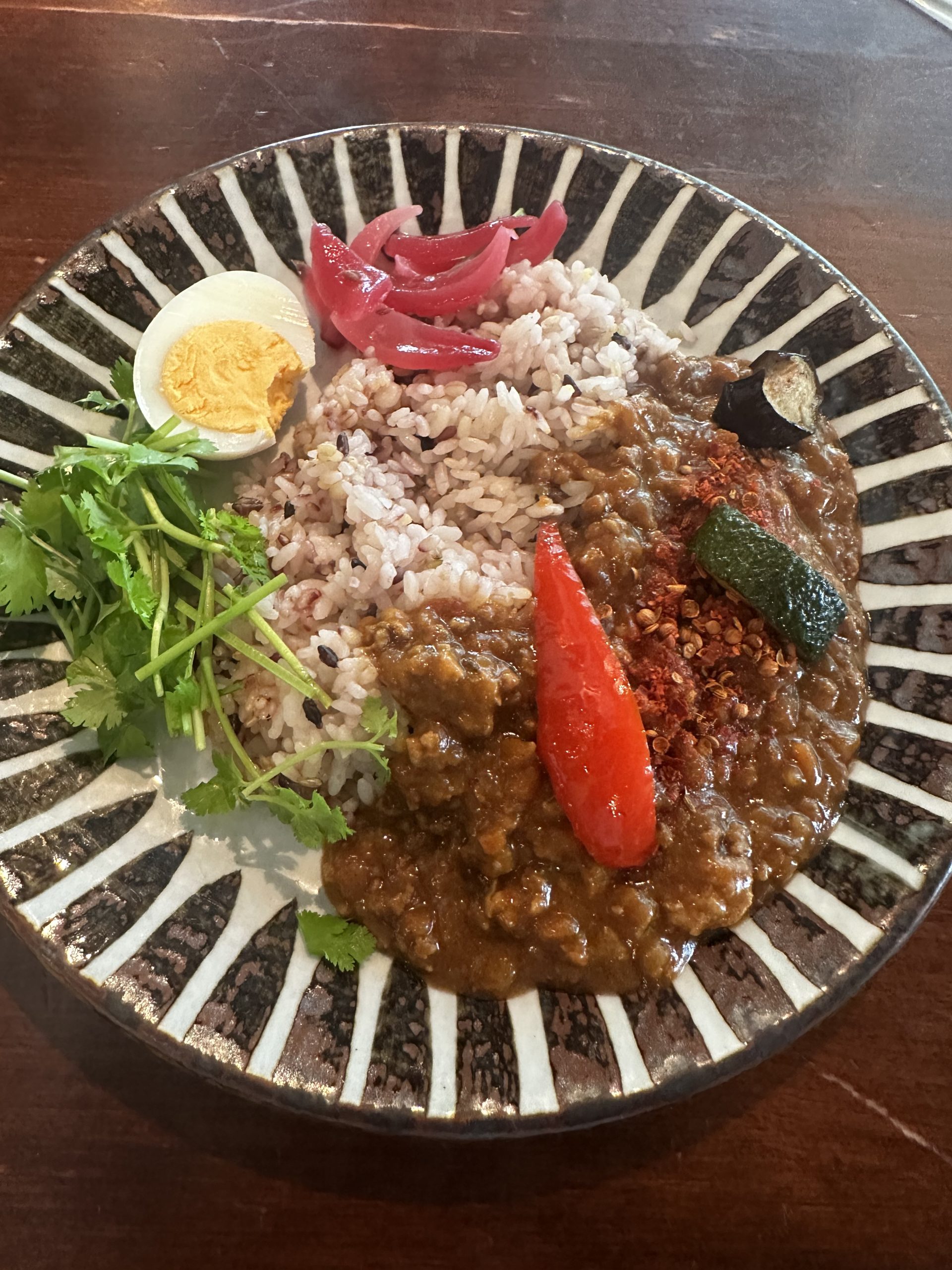 ランチカレーが3種類あり充実してる。 ランチにはサラダビュッフェ、ドリンクバー、スープがついてくてカレー1200円くらいだったのでまずまずのコスパかな ラム肉のスパイシーキーマカレー頼んだが、ねっとり濃厚だが、ちょっと甘めだったので、追いスパイスできると嬉しい