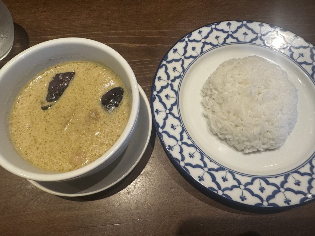 ガパオかカレーか悩んだが、グリーンカレー注文。ガパオライスにグリーンカレーついてると個人的には最高。 ルーはその店より結構辛味があり、ココナッツの甘味と混じってちょうどいいベストな辛さ。この辛さは病みつきなりそう。