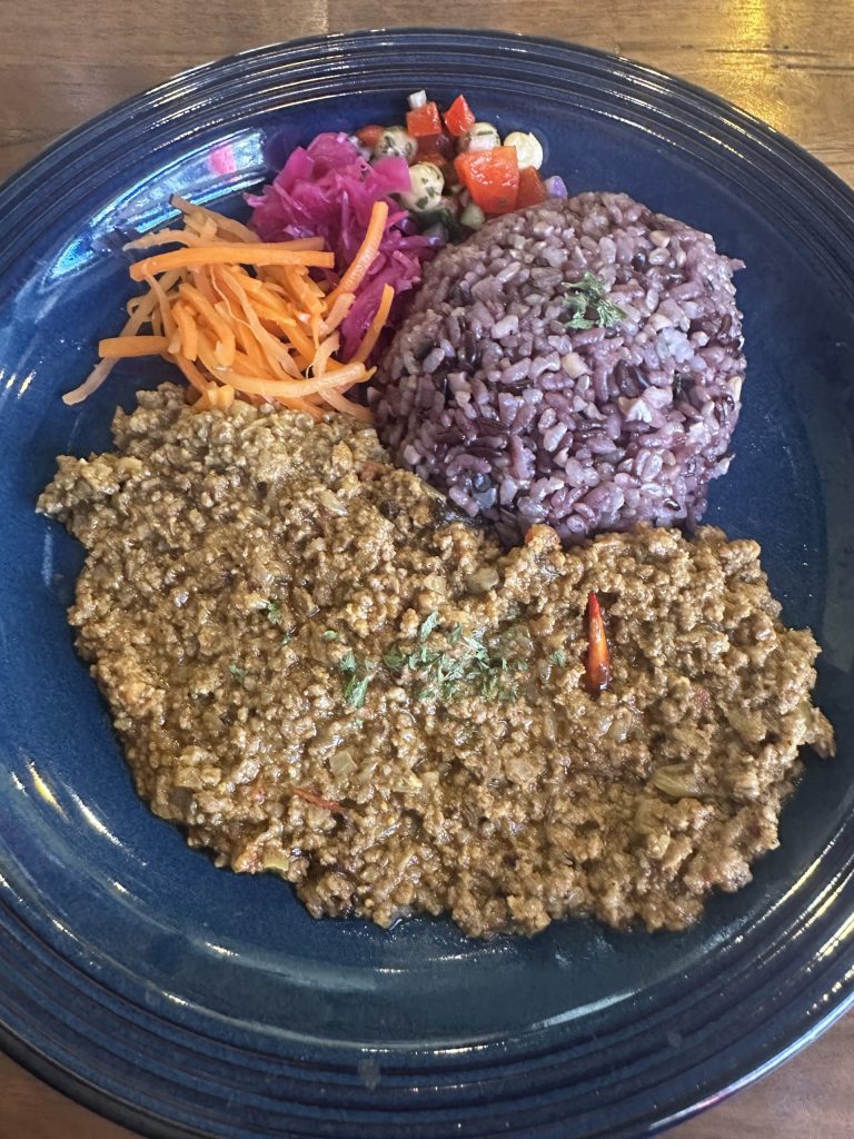 中華街に行ったついであえて中華ではなくカレーを。この店中華館はまったくなく純スパイスカレーです。 カレーの種類は5.6種類ほど、辛さも6段階選べる 塩チキンカレー推しな感じだったが、ココナッツキーマから。玄米への変更もできる。ここのキーマはスパイス感しっかりしていて、かなりねっとりしていて、濃厚感すごい。辛め選んで正解だった。ココナッツが少し甘めなので、ちょうどいいかんじ。