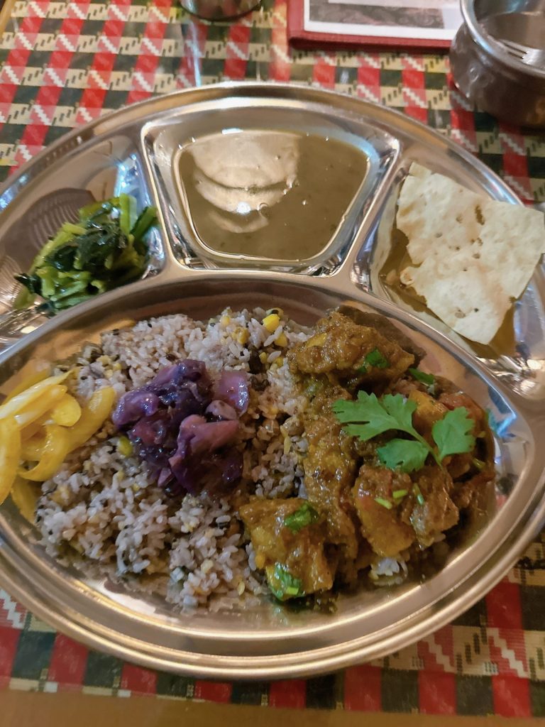 インネパ系かなと思ったけど純ネパール系です。ランチはダルパートのみ。値段も1000円くらいでお手頃です。ライスはパスマティライスと雑穀米を選べる。 ポークダルパート頼んだが、ベースのダルカレーは豆の甘みが感じが出ていて、優しいお味。おかわりも出来るみたい。テーブルのスパイス入れると味変出来るが、かなり辛いので入れ過ぎ注意。 アチャールの味が好みでこれだけでも、ライスいける。ライスに乗ってたドライポークとカレーが、特に最高。こんなに美味しいポークは久々に食べたかも。かなりお気に入り。この店おすすめ
