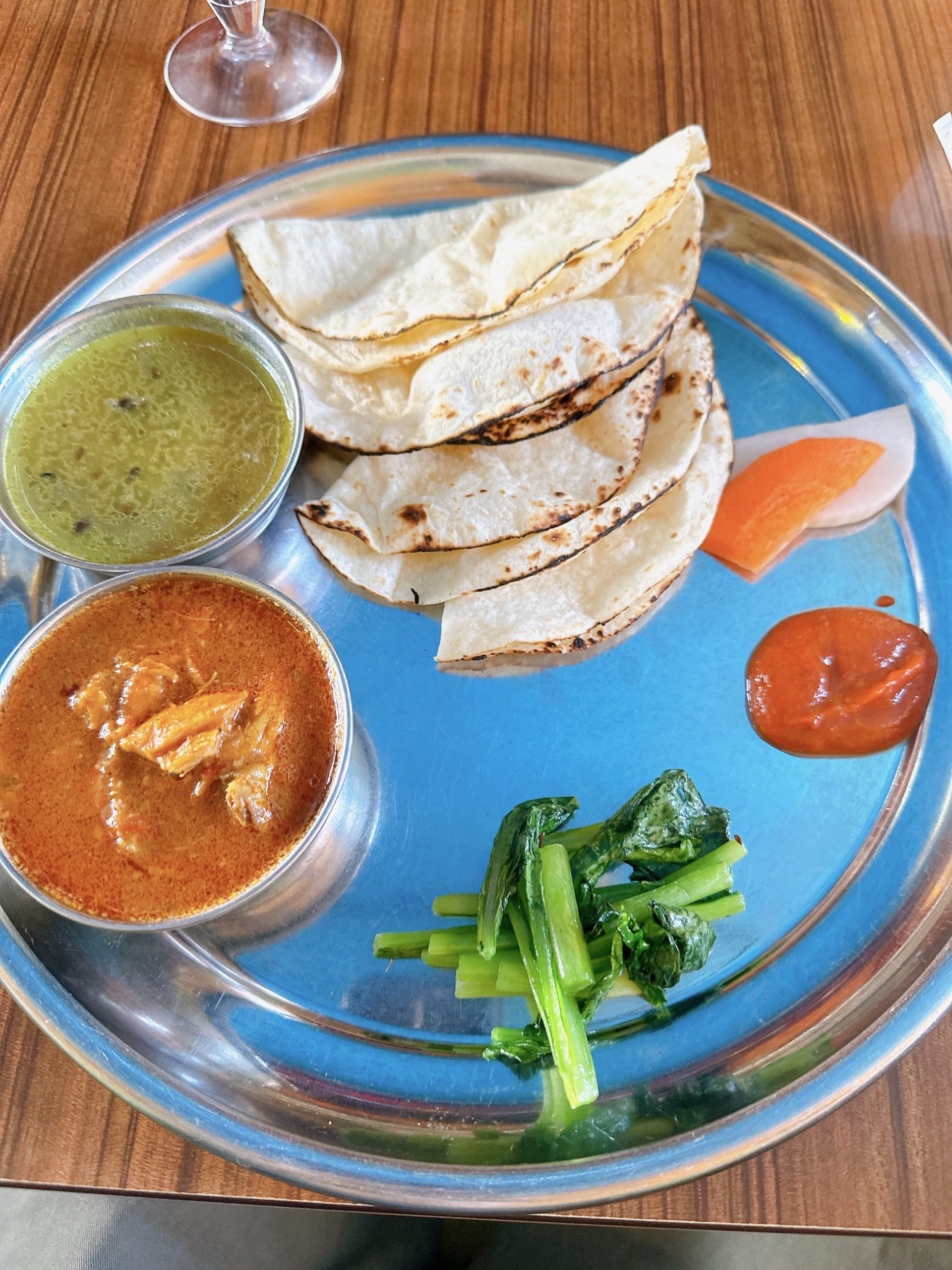 ビアガーデンとなっているが、カレー屋。屋上ビアガーデンも出来るので看板に偽り無し。 4階と屋上で食べられるみたいで、屋上がビアガーデンになってるようだ。 メニューは普通のインネパ系のものではなく本格的っぽい。みたことのないものも色々ある。 店員さんはこちらが恐縮するくらい丁寧です。 メニューが多すぎてどれ頼むか悩んだが、無難な感じのチキンロティセット注文。 カレーには肉がゴロゴロで濃厚。ロティとの相性抜群です。でもそれよりダルスープがすごく美味しかった。ダルスープはあんまり好きな方ではなかったが、ここのは何杯でもいけそうでおかわりしたかった。