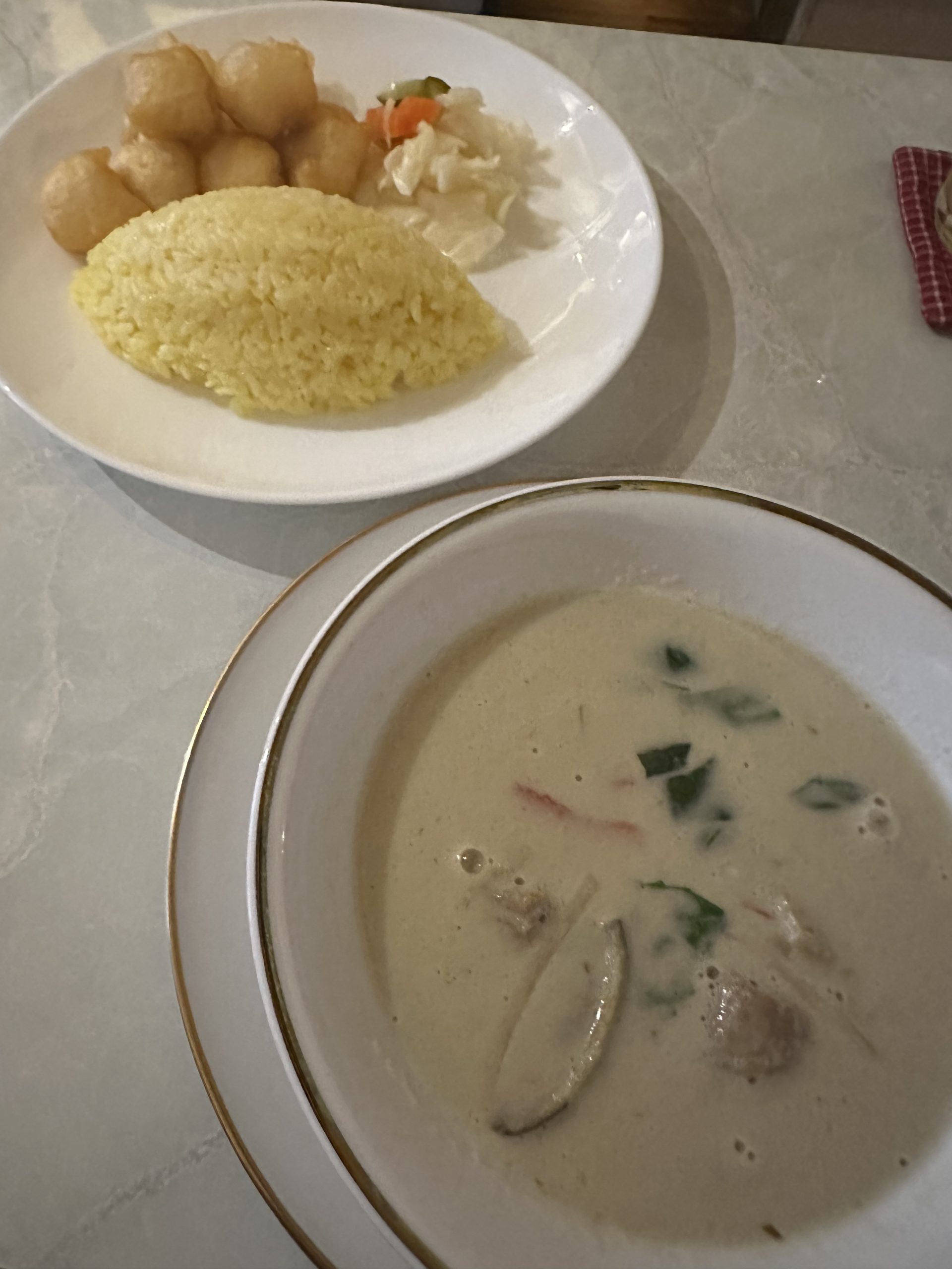 カフェらしいが、ランチはタイカレーが3種類ほど食べられる。 普通のタイカレーとは少し違い、鶏のフリッターがいっぱいついてくる。 カレーはピリッとした辛さとココナッツのまろやかさが合わさって凄くいい。 フリッターをカレーにつけながら食べると美味しかった。