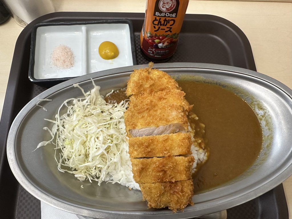 厚切りカツカレーで有名な店 普通の厚切りは思ったほど厚切りでは無かった。 カツは厚めだが、柔らかく食べやすい。岩塩やカラシも付いてくるのが良かったが、ルーが好みでは無かった。昔食べた学食カレーの味に近かった