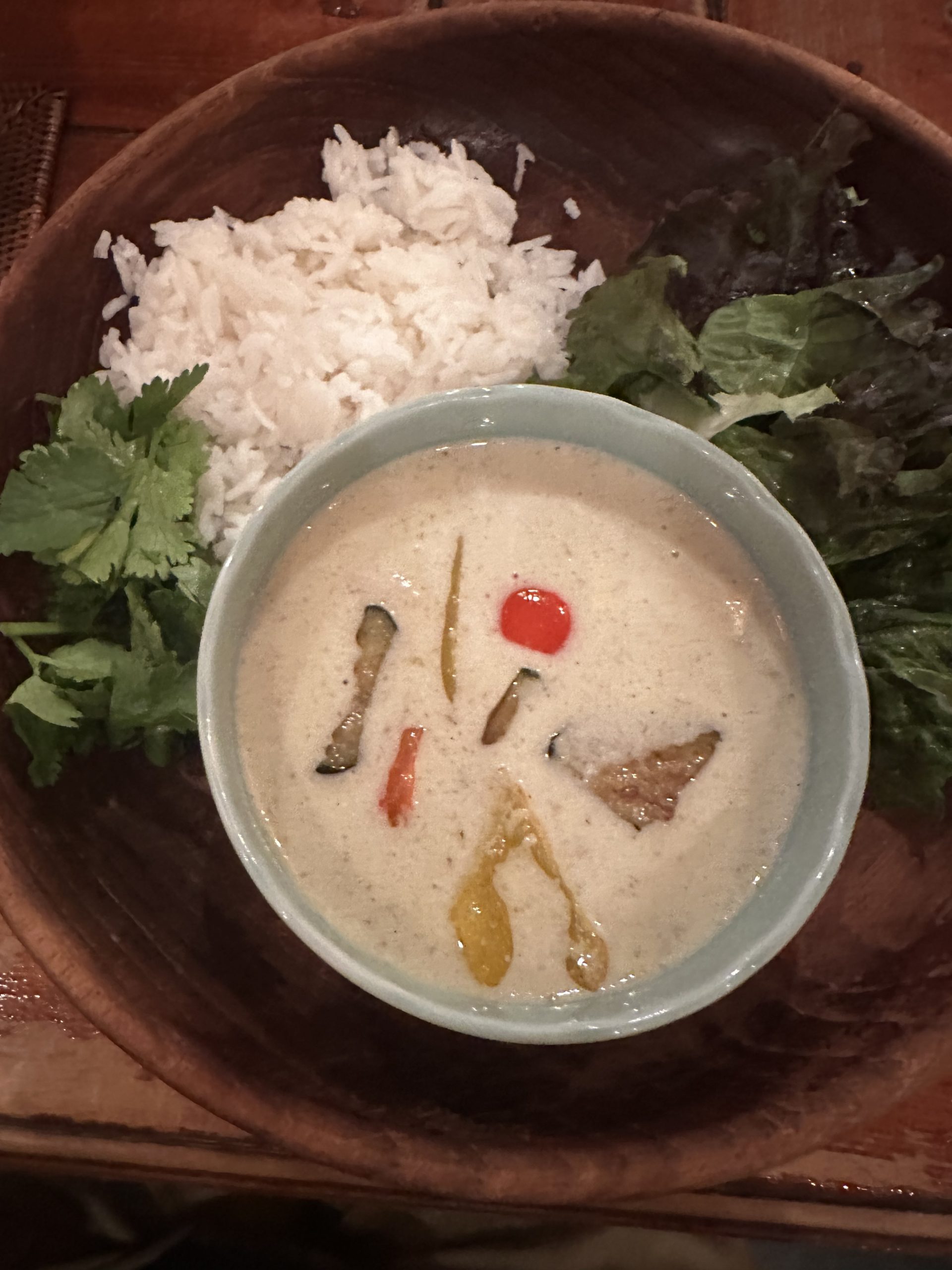 パクチー屋という店名に惹かれて入ってみた。 メニューは食事も飲み物もパクチー入りパクチーマニアにはたまらない店ですね。 色々あって目移りしちゃうが、まずは定番タイカレーから。クセの強さは無くあっさり系。後から気づいたが追いパクチーできるらしい。頼めばよかった