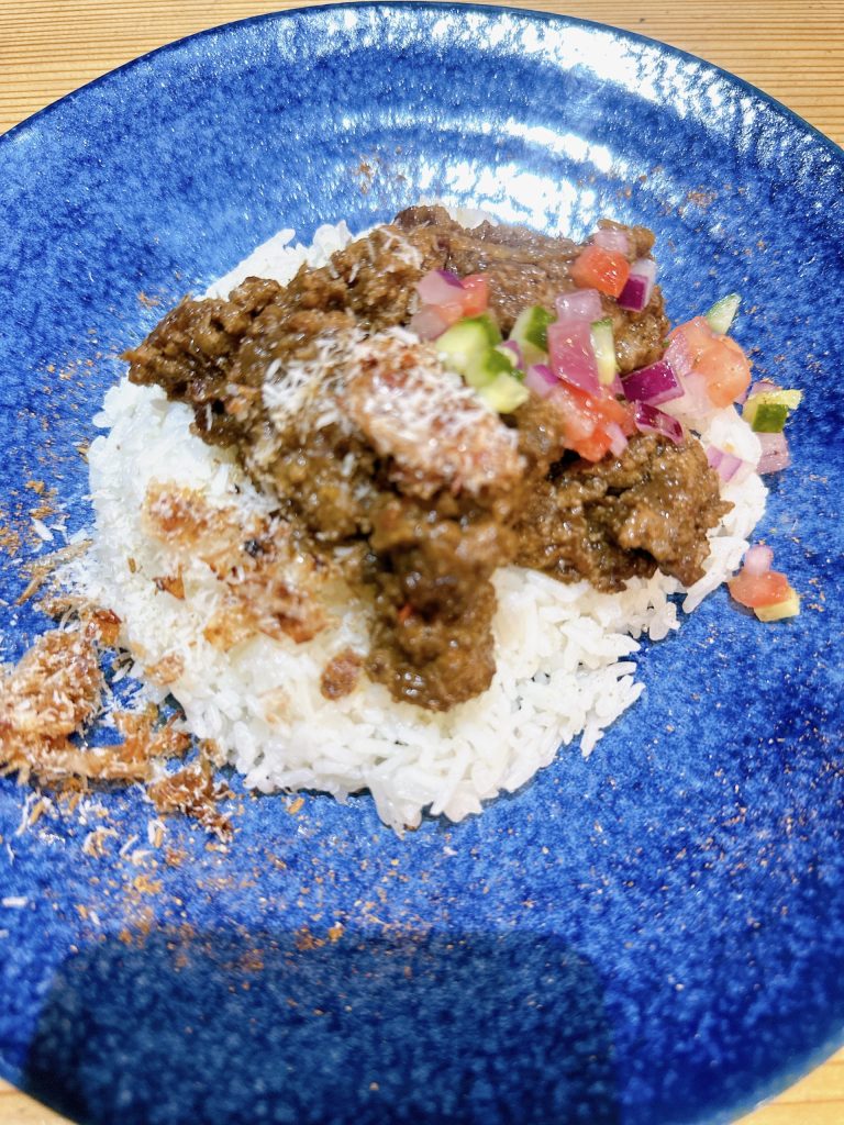 ここのウリは出汁の入った旨みカレーだと思うが、キーマカレーがあったので、いつも初見で頼むラムキーマ注文。普通のキーマとは全然違って、肉の塊が大き目で、食感がすごくいい。スパイスのバランスもいいし感動とつけるだけあってなかなかだった 一緒についてくるダルスープもいい