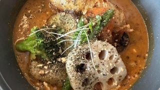 メニュー骨付きチキンと7種の野菜スープカレーメモ朝から開いてるカレー屋 11時前に行ったがすでにほぼ満席。 帰る時には外には行列出来てた カレーだけでなくスイーツも置いてある。 ココナッツスープベースのスープカレー頼んでみたTokyo so...