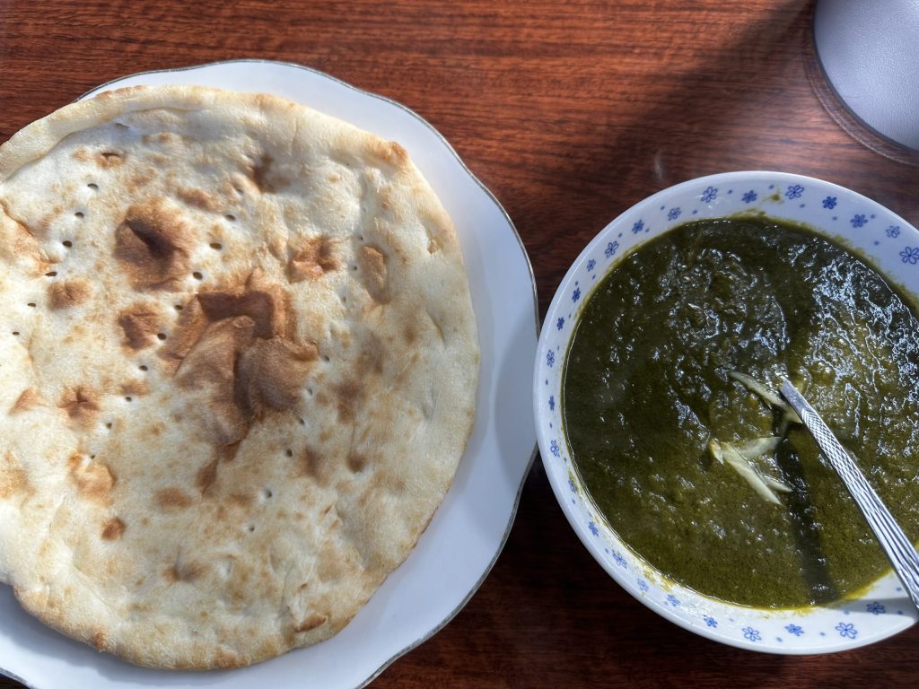 ハラルカレーの店。インドとスリランカ料理らしい。 店内は香辛料とか色んなものが売っている。日本の砂糖や牛乳も売ってあった。 メニューが通常とはちょい違う。セットはなくて、カレーと主食を選ぶ。ナンは100円で安い。 カレーはオレンソーという聞いたことないものチョイス。グリーンカレーと書かれたのできっとサグカレーだと思ったが、想像通り。量も多く味は濃厚。甘さが無いのがいい。中に入ってる針生姜がいいアクセントなってる。ナンは普通のナンではなく現地で出てきそうなの。ふんわりしてる。結構現地度高い店なんではと思う。現地行ったことないけど、、