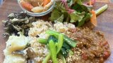 店内狭めですが、おしゃれに飾り付けされており、居心地はいいですね。 写真はどれも美味しそうで目移りしますが、いつものパターン通り、最初はキーマ。 キーマは2種類で普通のキーマとラムキーマ。ラムキーマの方を注文。山椒が入っており、多少の痺れ感とラム肉がよく合う。北九州では、なかぬか本格的なカレー屋見つけられなかったのでここはあたりだった。