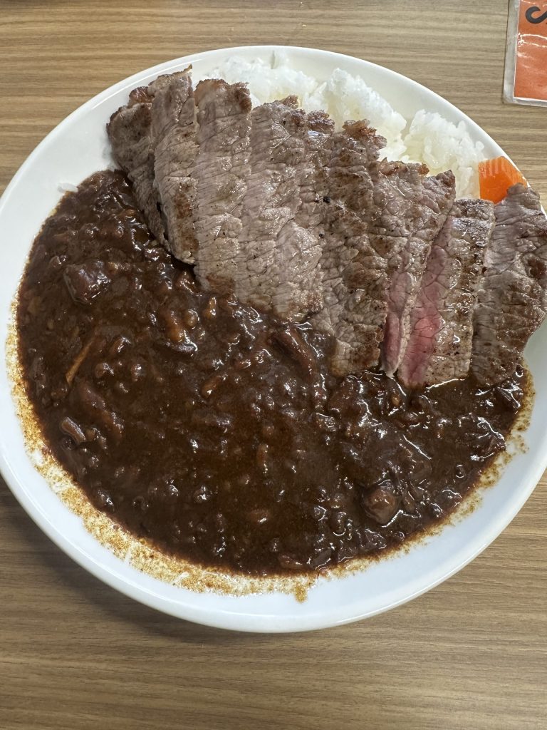 柳川市のふるさと納税にもなってるカレーのステーキ乗せ食べてみた。 すごく肉の量でルーの中にも牛肉が。ルーは深みがあり、しっかり濃くて美味しい。肉柔らかくて量あるので、すごく満足できる