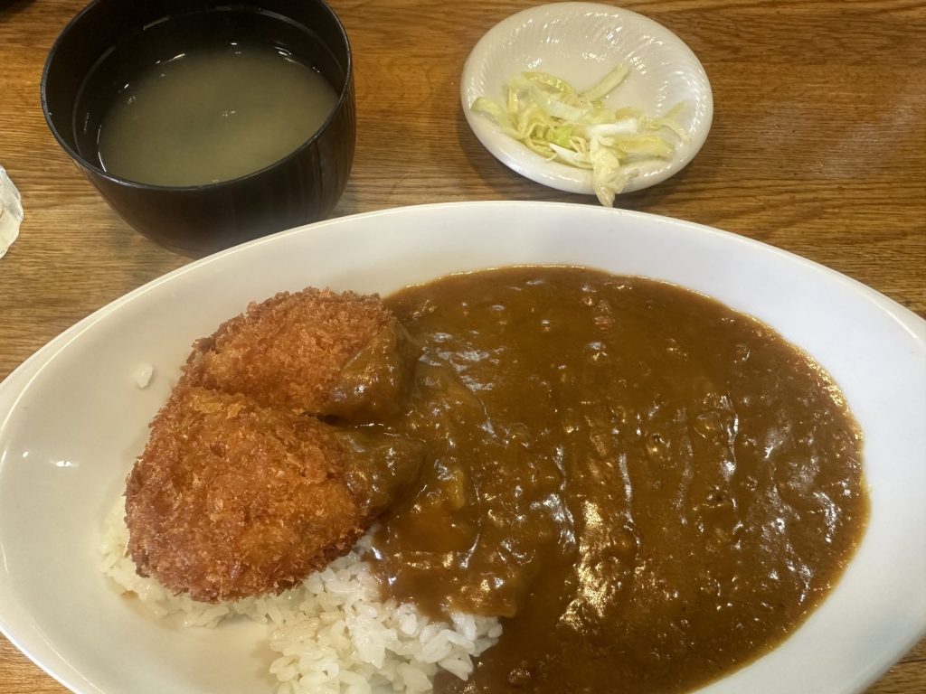 駅前すぐで好立地だが、相変わらず安い。価格のところ上から何か貼ってあったのでこれでも値上げしたんかな。コロッケカレー580円で、コロッケも注文してからちゃんと揚げてた。味噌汁にキャベツの酢漬け、福神漬けやらっきょうも入れられる。ルーは甘すぎず辛すぎずの昭和レトロ風カレーだが飽きのこない感じ。コスパ最高店です