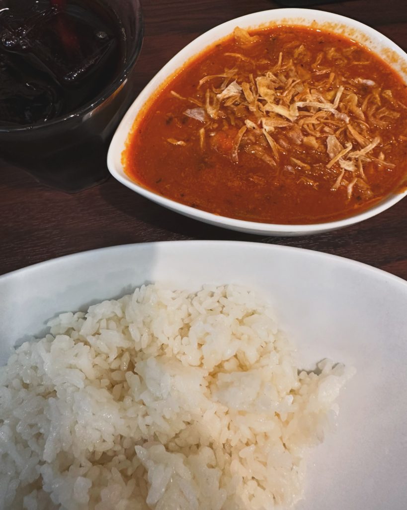 東京ドーム近くのインドカレー店。 ランチメニューは一般的なメニューだが、日替わりが食べたことなかった、ポーク・ド・ピァージャだったので、そちら注文。 玉ねぎがたっぷり入っており、トマトもはいってるみたいで、全体的にまろやかです。豚肉も柔らかく美味しかった。