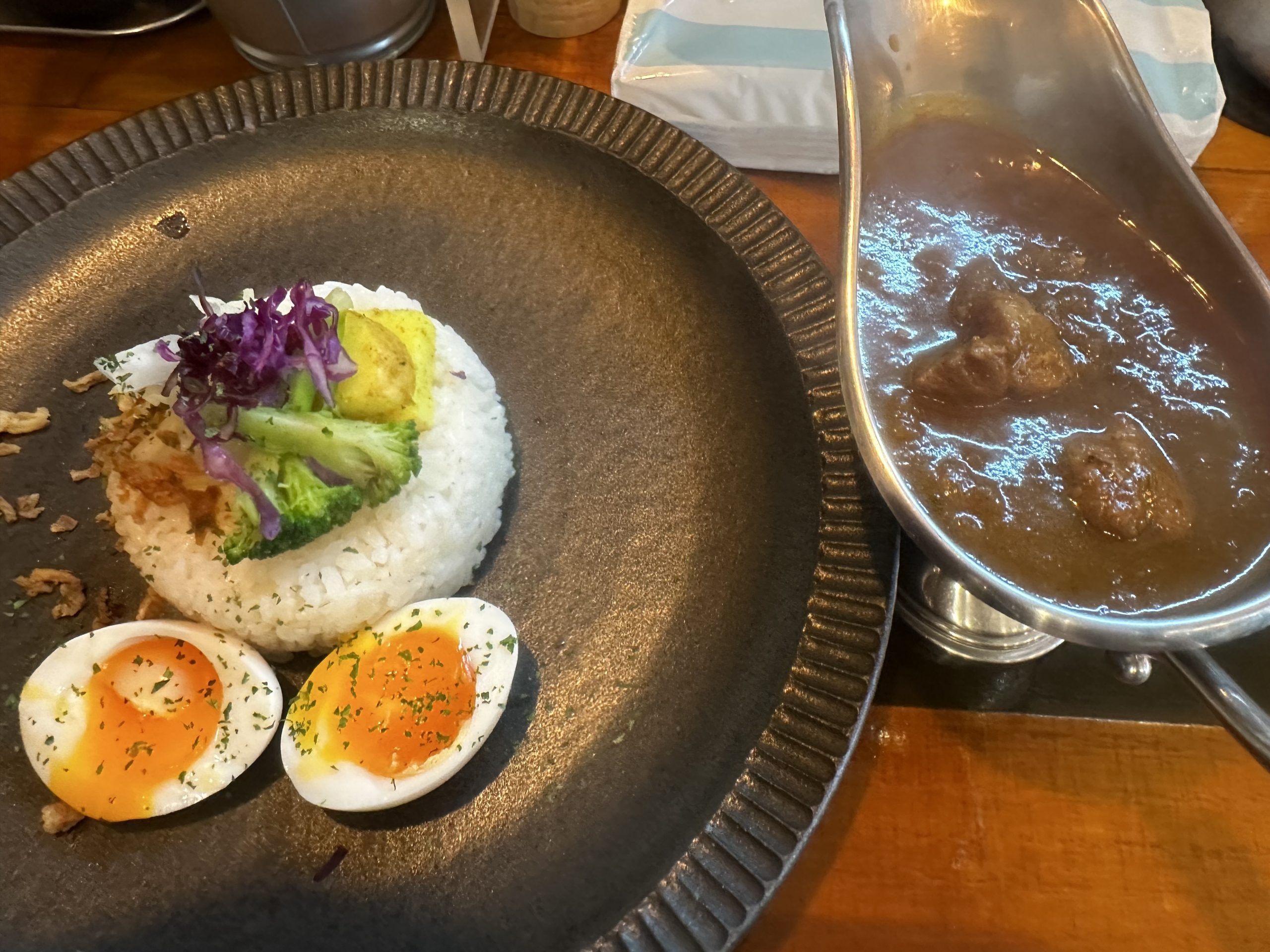 スパイスカレーのようだが、スパイスより玉ねぎの味が強く感じ、凝縮されてる。玉ねぎの甘みも感じるので辛めの方選んだ方がバランスいいかも。値段もお手頃で美味しかったです