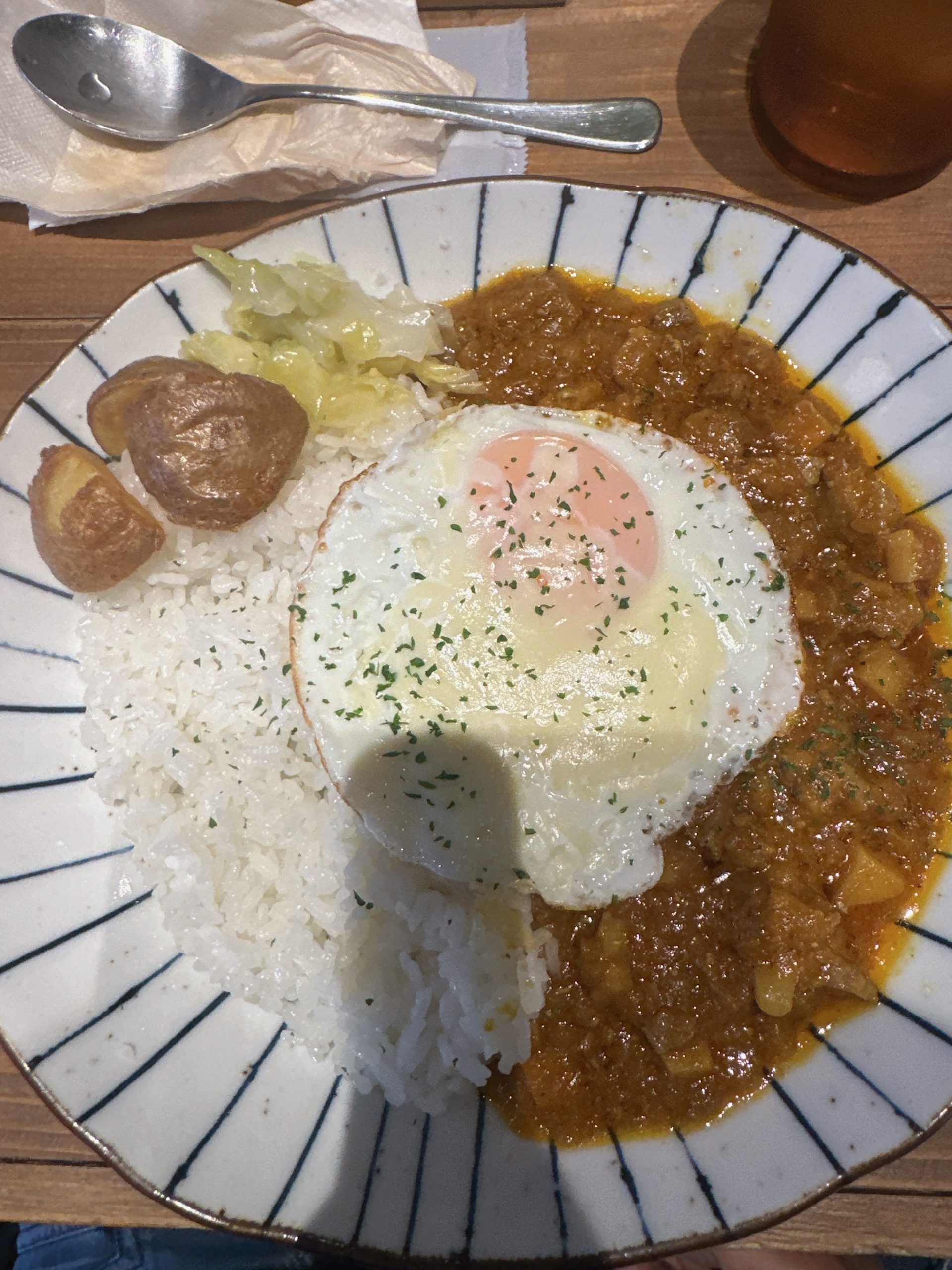 この辺はカレー屋さんが多く行ったことない店へ訪問。人気店らしくどんどん客来てた。 キーマカレー注文。ルーはそんな辛く無く、テーブルのスパイスで調整。肉、野菜の歯応えがすごく良く食感満足。
