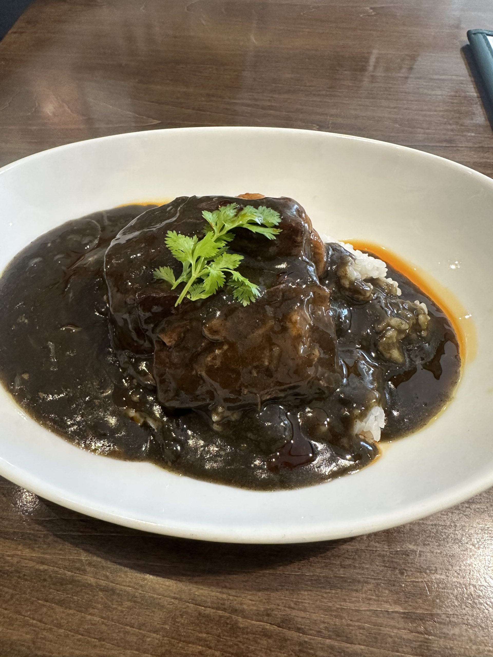 おすすめの上海角煮カレーを注文。かなり肉のサイズが大きく肉塊のよう。角煮は脂身かそんなになく良かった。