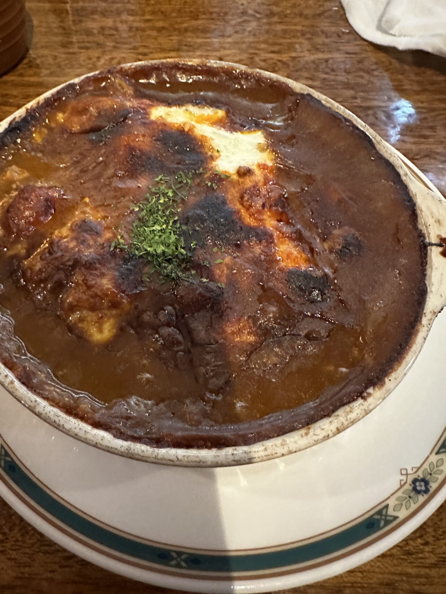 この辺のカレー屋木曜日休みが多く検索して開いてる店探してきた。 パブ兼レストランで、食事メニューも充実してる。店名からしてドイツ系がメインなのかな。ビールが飲みたくなったが仕事あるのでグッと我慢 カレーは焼きカレースタイル。かなり熱々で出てくるので冷ましながらゆっくりと ライス別皿で付いてくるがルーだけでも十分具たっぷりで満足。お肉も大きく食べ応えある。付け合わせがザワークラフトなのがドイツ
