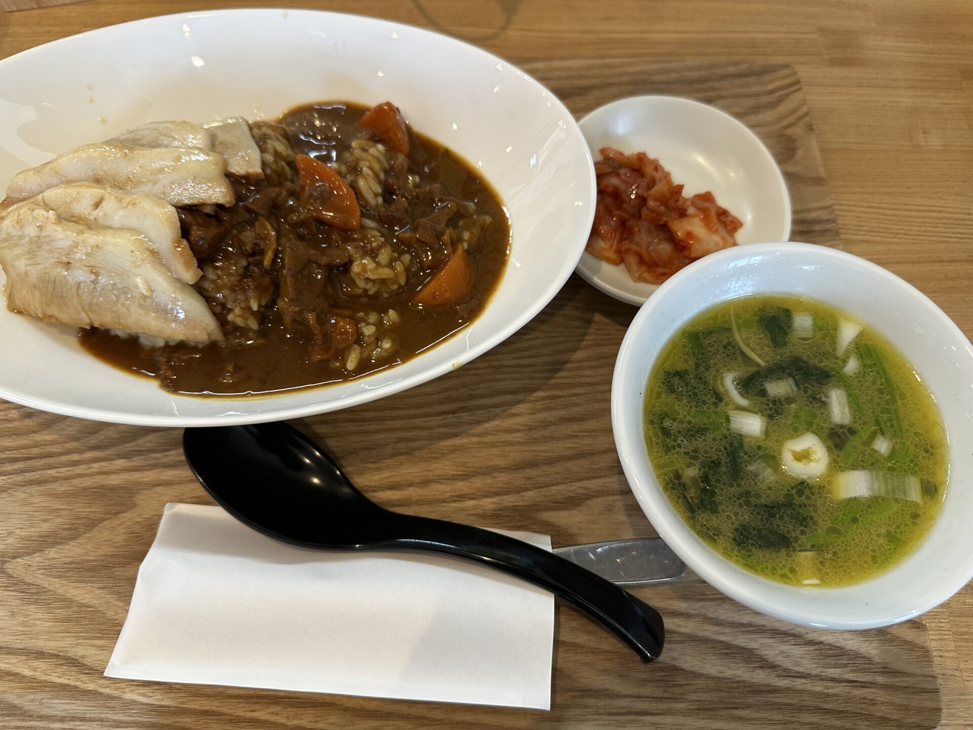 ラーメン屋でカレー。前回来た時、カレーが売り切れで、二階めのチャレンジ。スープはラーメンのスープです。
