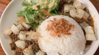 お気に入り ニャムニャムカフェ(東京都西東京市) メニュー牛豚キーマとたくあんのSPICEカレーメモカレー以外にもガパオとかアジアンテイストメニューがある。カレーは日替わり一種類。 白いキューブみたいなのがいっぱい入っていて、大根かじゃがいもかなぁと思ったが、食べるとなんとたくあん。意表つ... 2022.09.04 お気に入りスパイスカレー西東京市